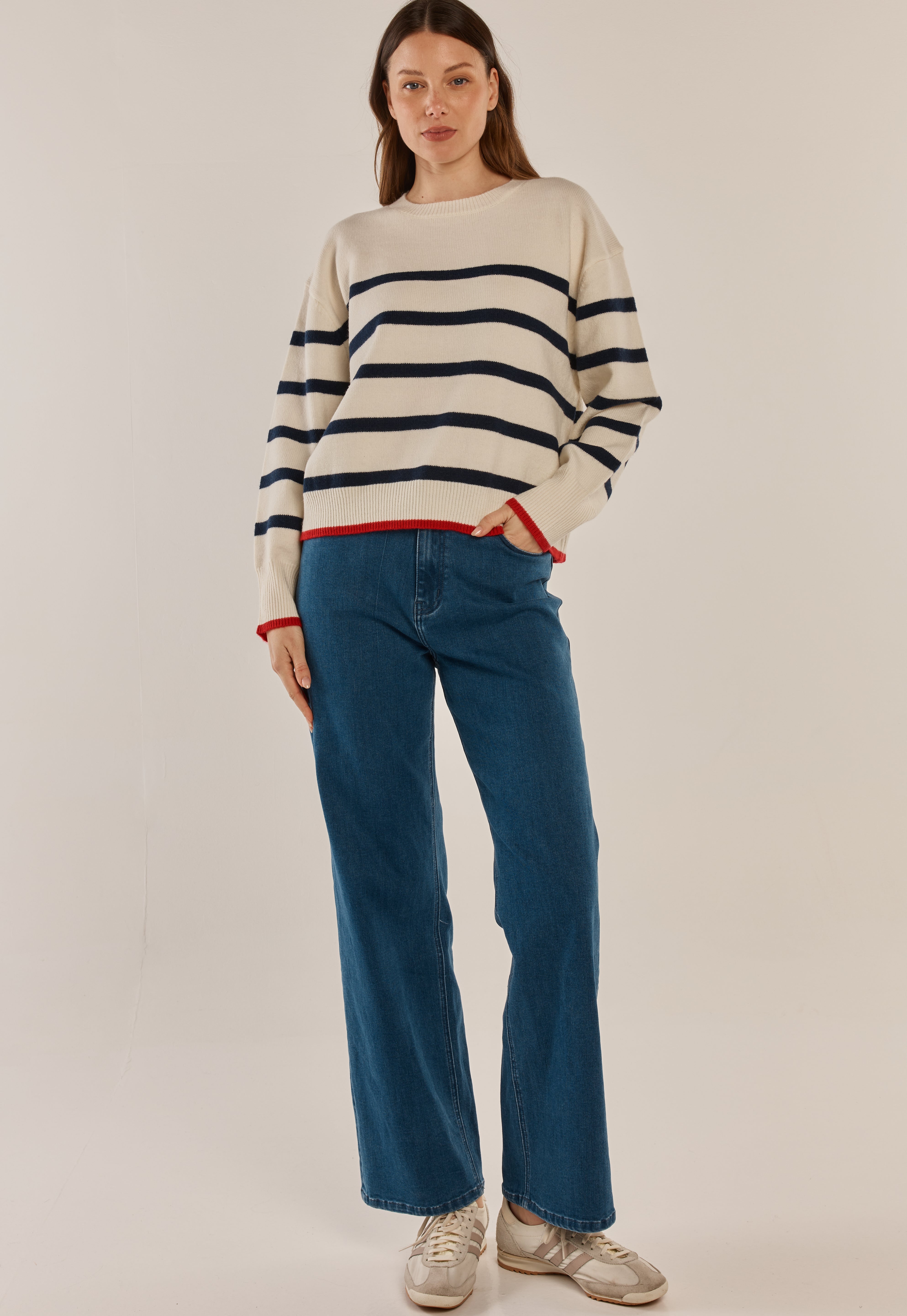 Leonie Knit Sweater - Navy/Off-White Stripe