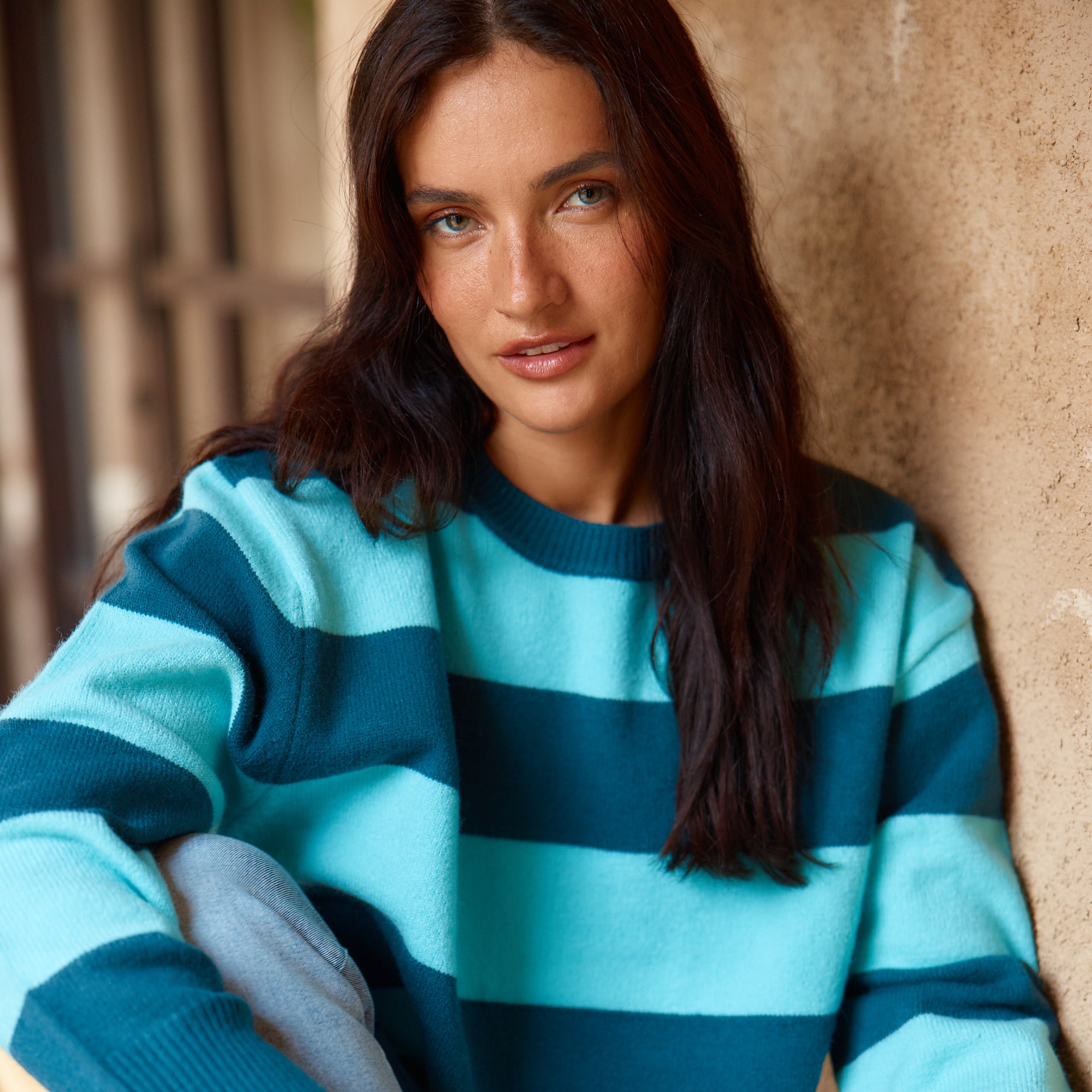 Elise V-Neck Rib Dress - Green Stripe
