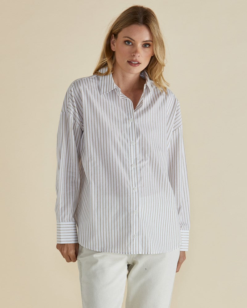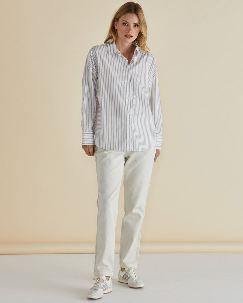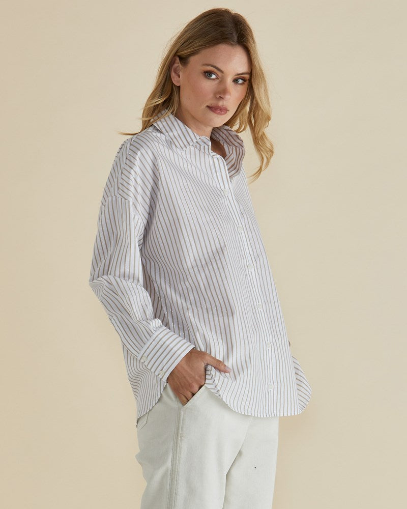 The Artemis Shirt is a classic piece made from soft fabric with a relaxed fit. Featuring a classic collar, button-up front, and button-up cuffs, this shirt offers a timeless, polished look. The curved hem adds a modern twist, making it perfect for pairing with trousers or skirts for a chic, easy-going outfit.