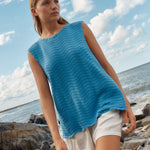 The Aviva Tank is an effortless staple designed for easy everyday wear. Crafted in a textured knit, it features a round neckline and a wavy stripe hemline that adds a subtle statement. Its sleeveless silhouette and relaxed fit make it perfect for layering or wearing solo through the seasons. A transeasonal piece that feels both classic and elevated.