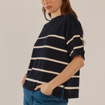 Bailey Boxy Top - Navy/Cream