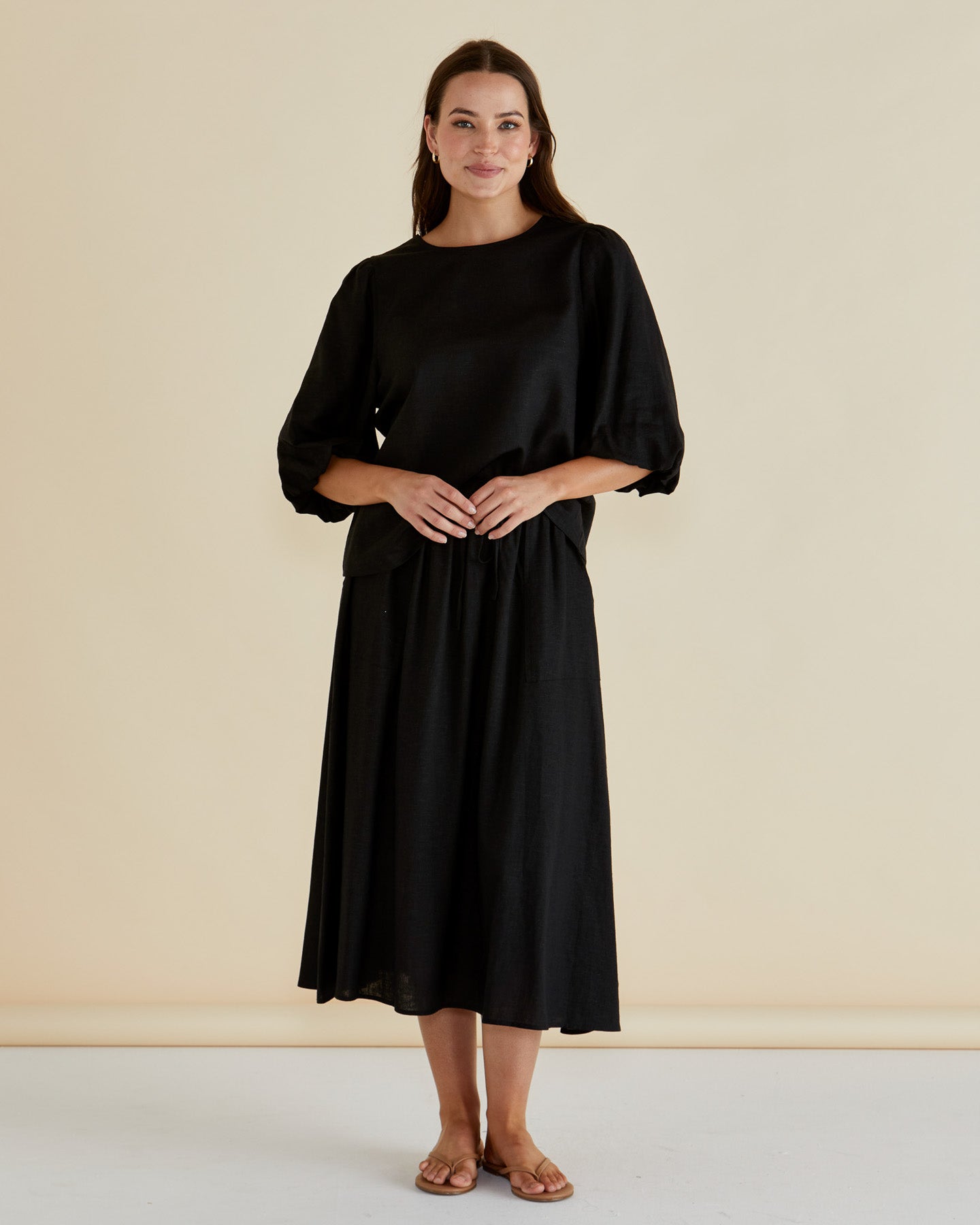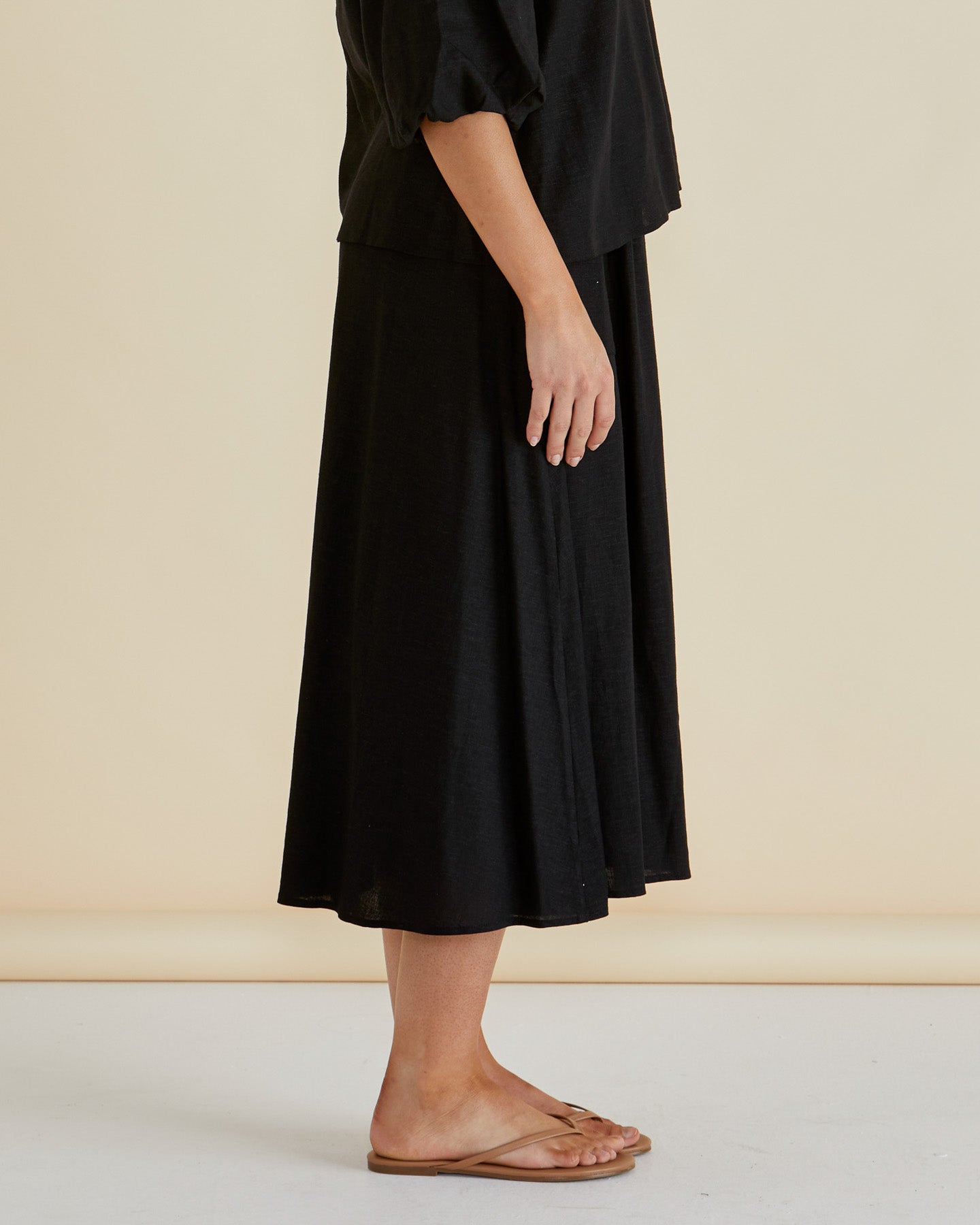 Made from breathable viscose and linen blend, the Belize Skirt features a flattering circle cut and elasticated waistband with drawstring for comfort. Patch pockets add a practical, classic touch to this relaxed fit piece. An elevated, easy-to-wear transeasonal skirt that pairs perfectly with wardrobe essentials.