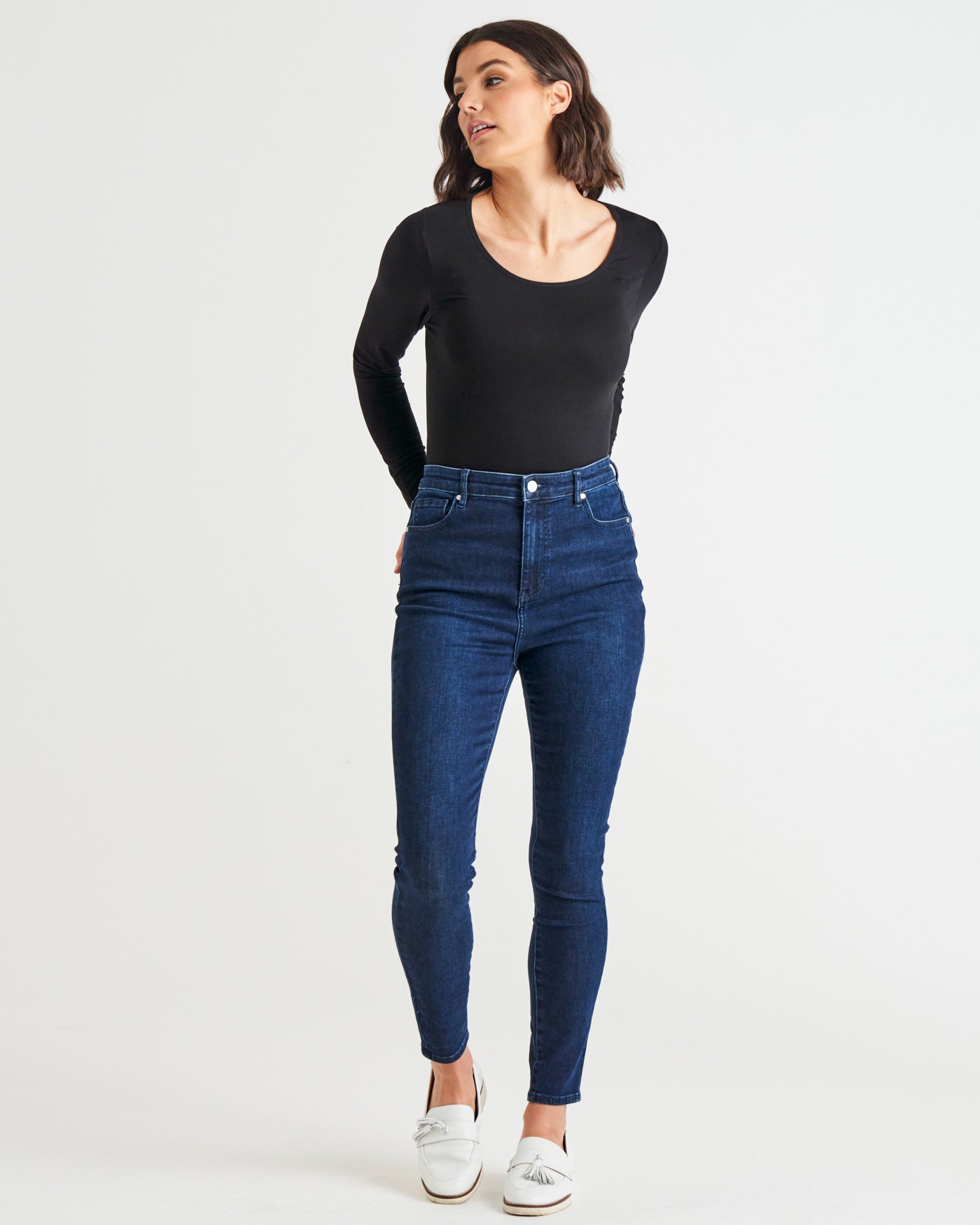 Meet the Betty Essential Skinny Jeans your go-to blend of comfort and style! Crafted from soft, giving fabric, these flattering jeans offer a clean and modern look. With a mid-high rise fit, ankle length, and classic button and zip fly, Betty is perfect for chic, laid-back vibes. Elevate your wardrobe with these essentials where fashion meets ease effortlessly!
