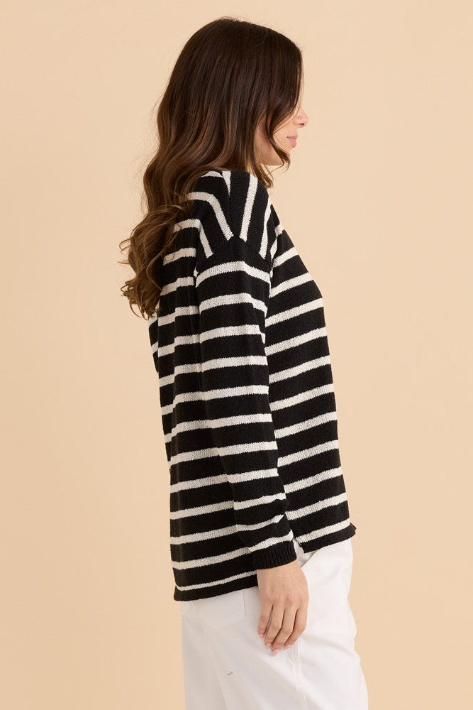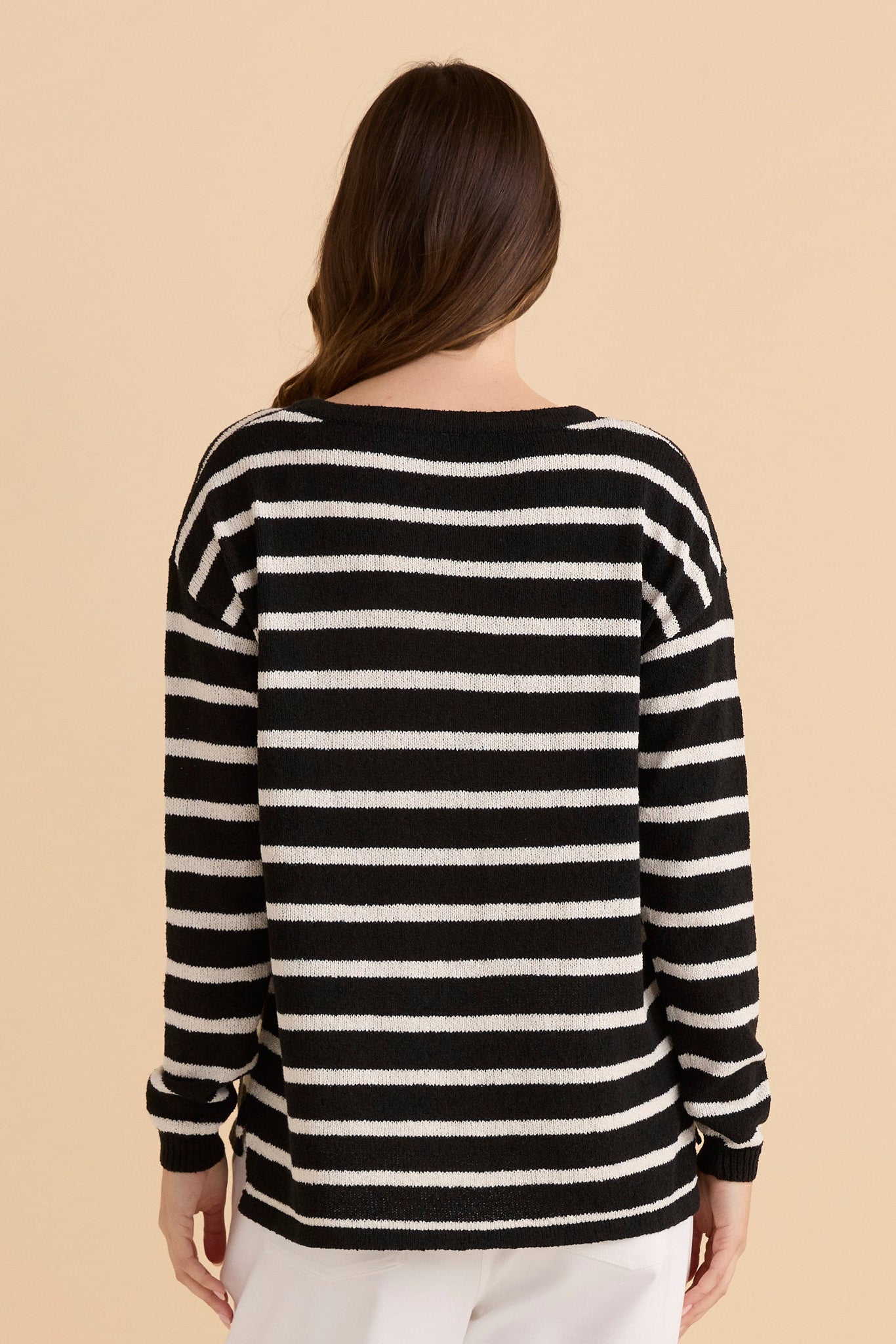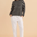 A soft, breathable knit that feels comfortable and refined for daily wear. The long sleeves and classic crew neckline create a timeless essential. Designed with an elevated stripe pattern for easy styling. A relaxed silhouette for a confident, effortless look.