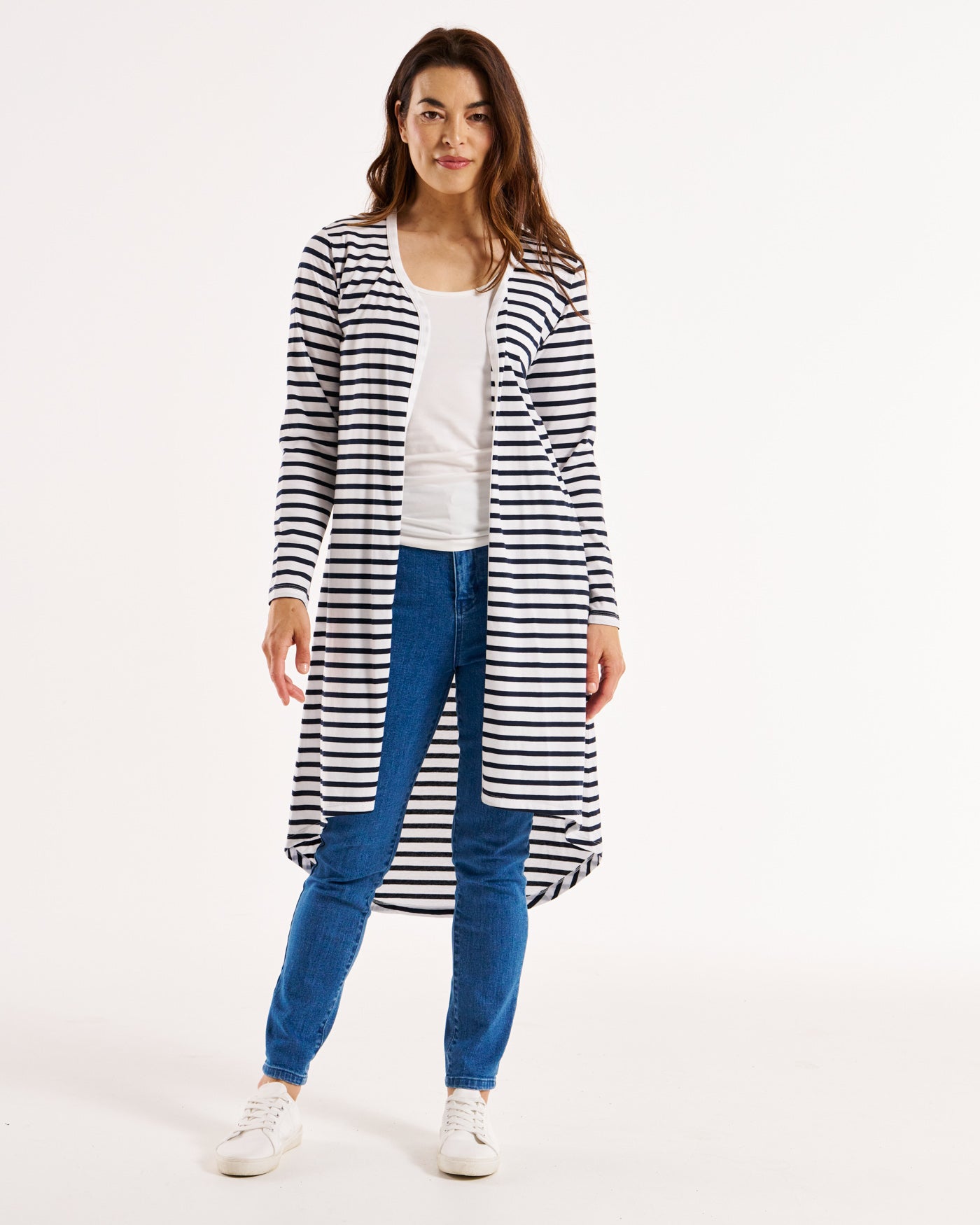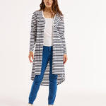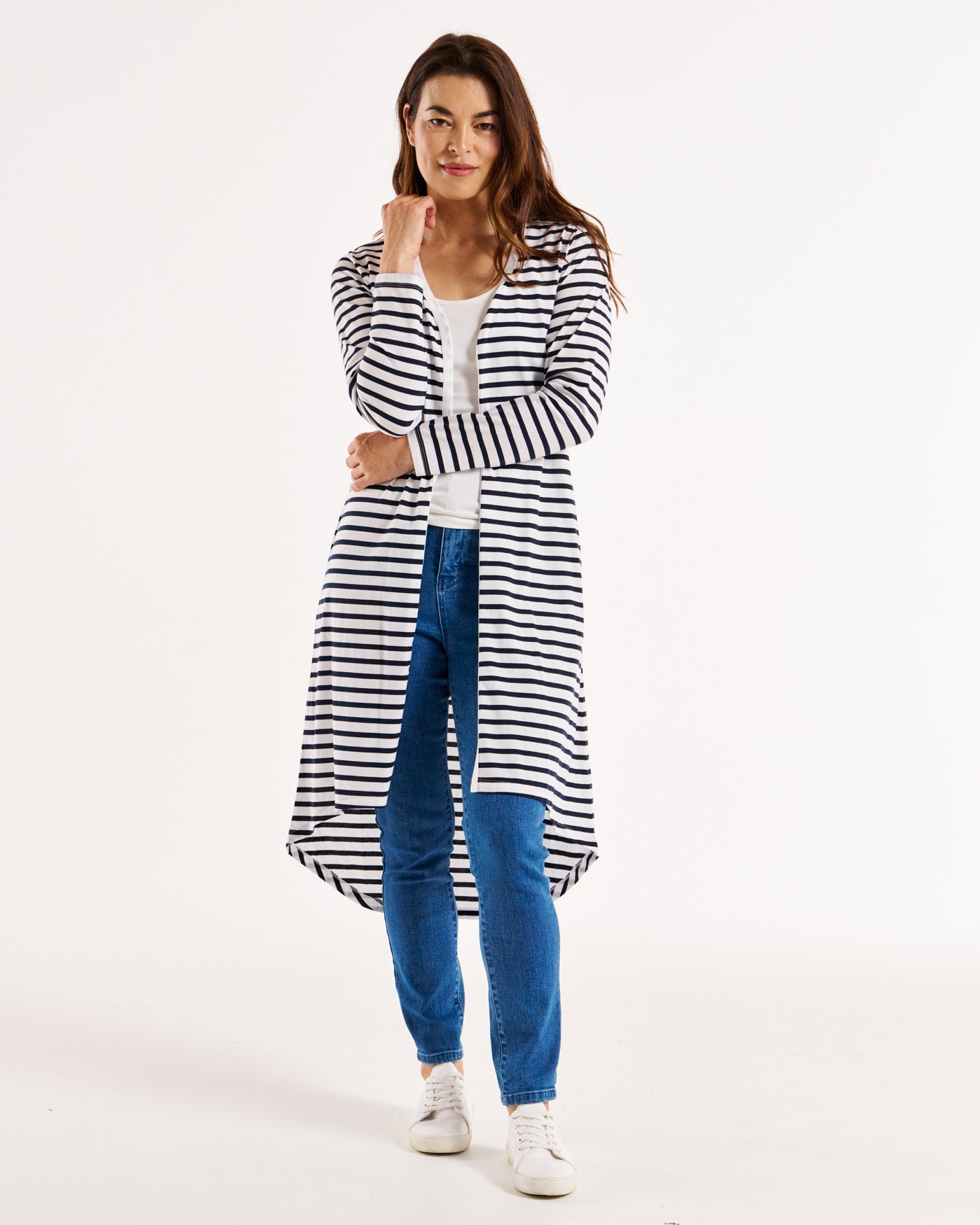 Byron Loose Long Sleeve 100% Australian Cotton Cardigan - Blue/White Stripe