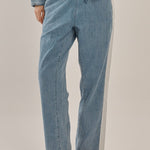 The Callie Denim Jogger blends comfort with everyday practicality. Designed in comfort denim, it features an elasticated waistband, draw cord detail and functional pockets. The relaxed fit makes it easy to wear all day. A trans-seasonal pant designed for effortless styling.