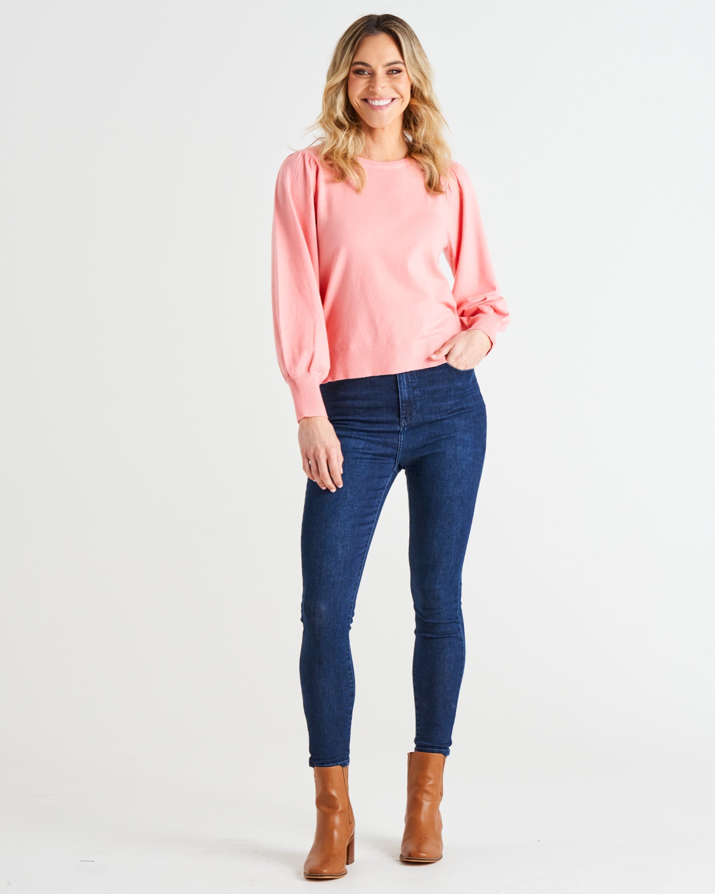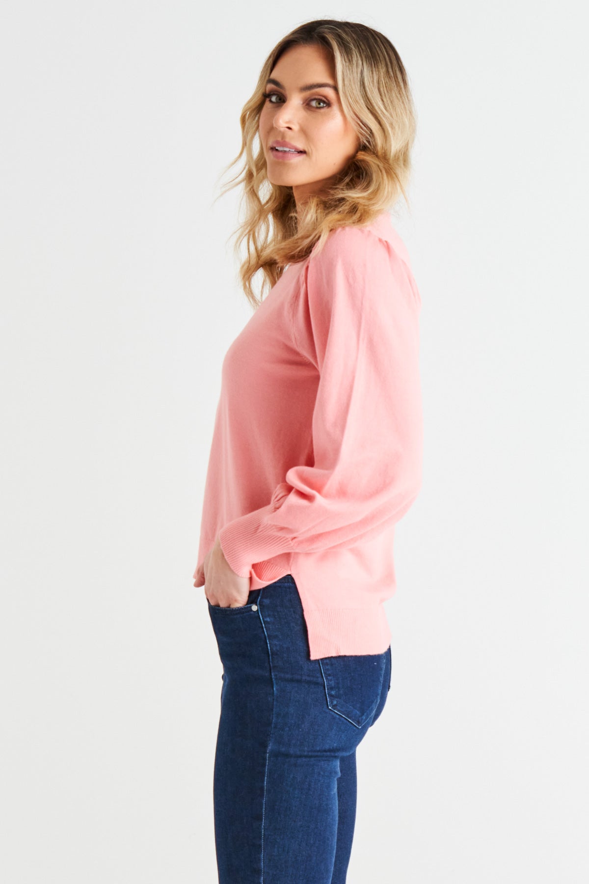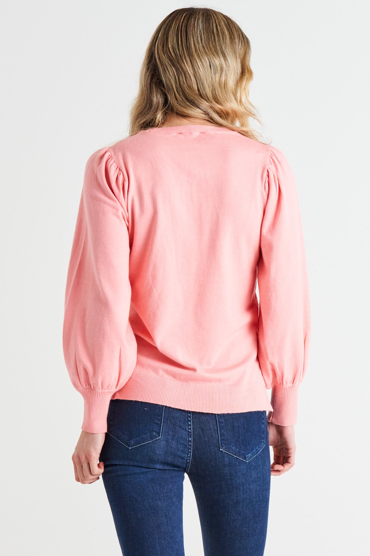 Charlotte Balloon Sleeve Knit Jumper - Pretty Pink