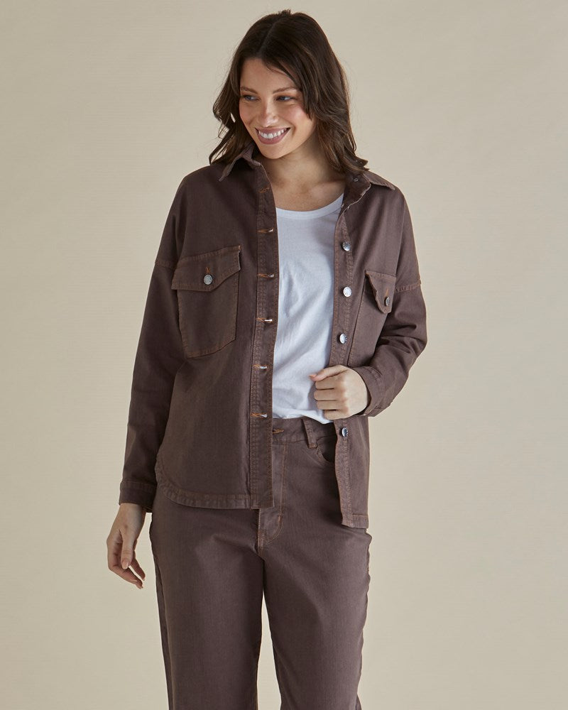 The Cherry Denim Shirt is the perfect blend of classic and modern. With its button-up front, chest pockets, and curved hem, it’s a versatile piece for layering or wearing solo. The relaxed fit ensures comfort, making it a must-have for effortless, everyday chic.