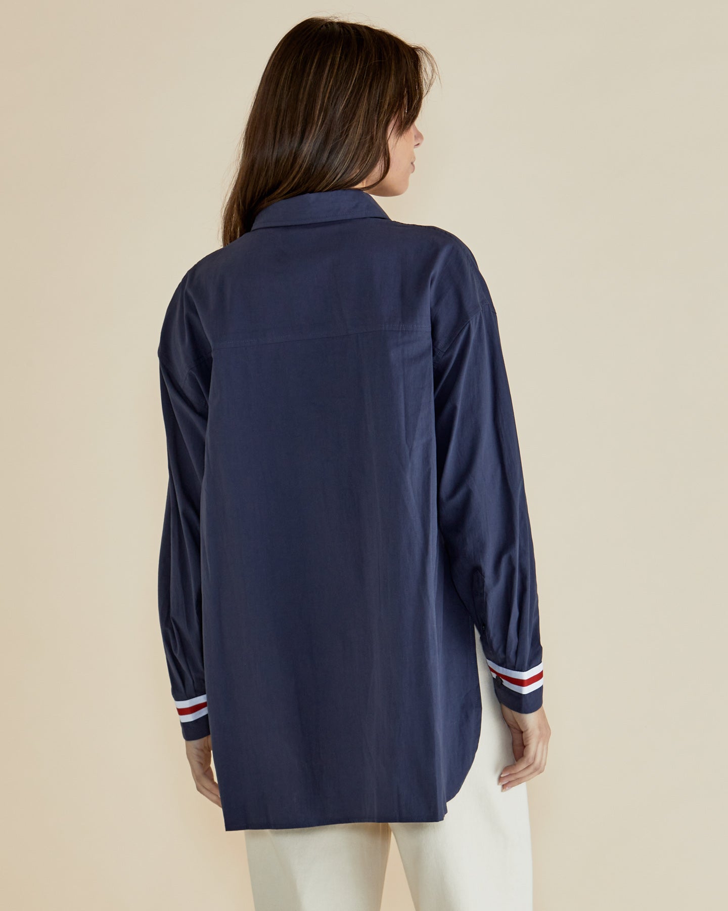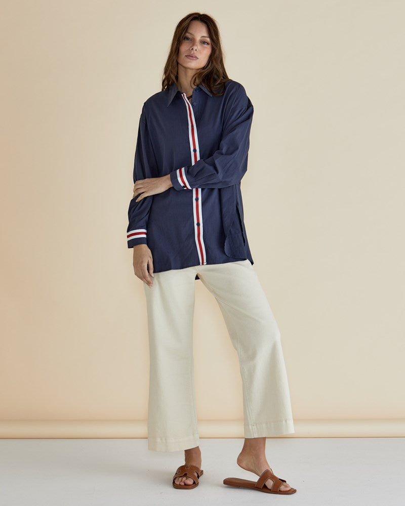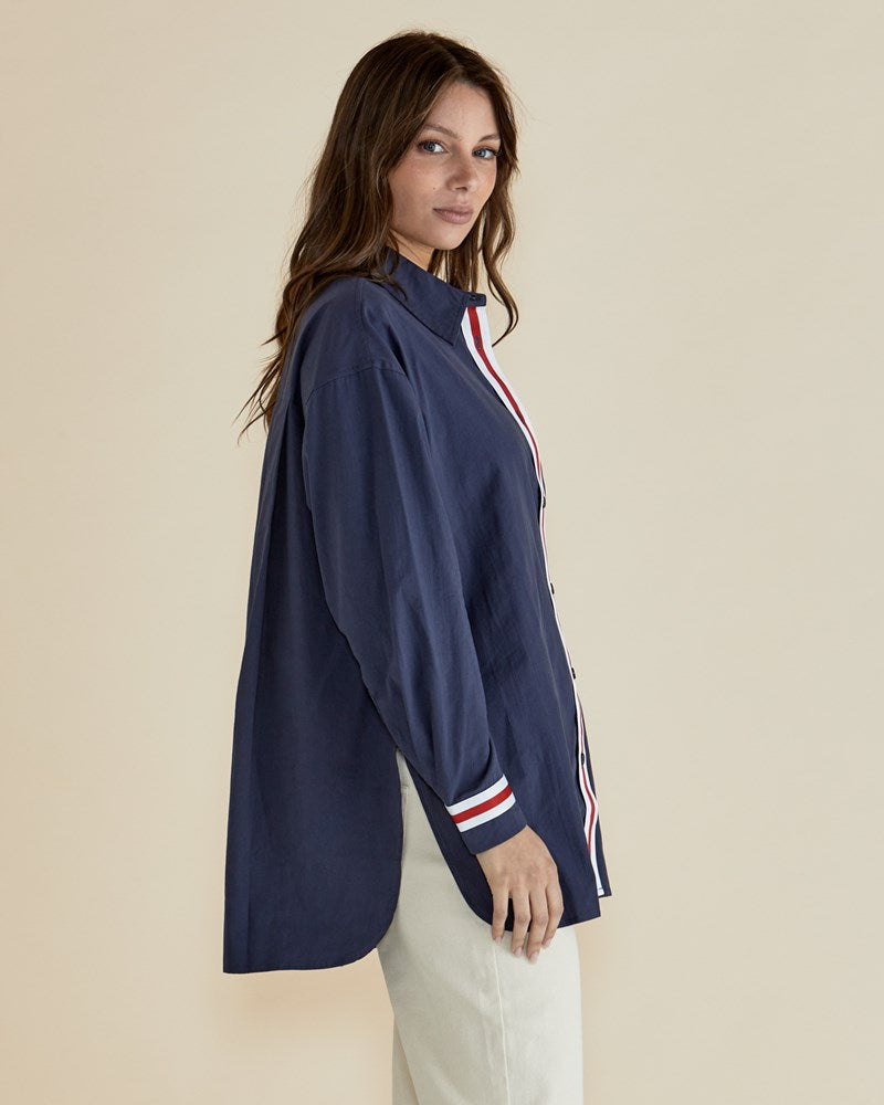 The Claire Classic Shirt redefines the button-up with its elongated side splits and a relaxed silhouette. A timeless collar and curved hem make this shirt an easy and current choice for an elevated yet comfortable look.