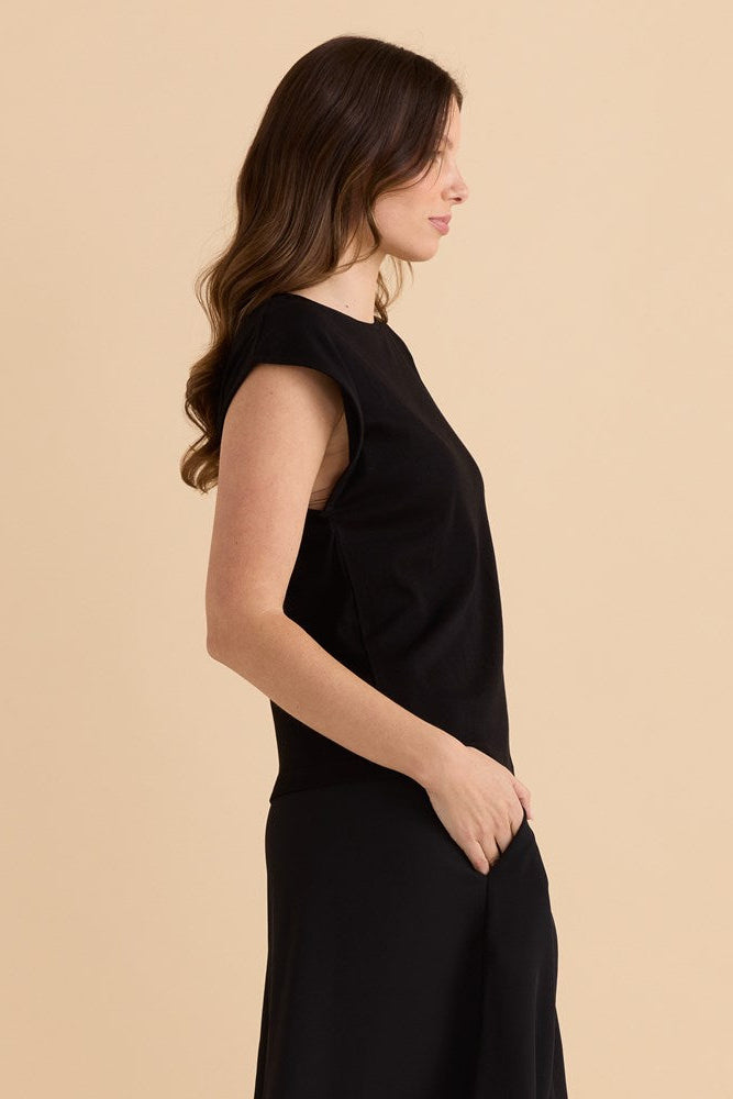 A soft stretch tee with a timeless crew neckline. The cap sleeves offer flattering coverage. Comfortable and easy to style from weekday to weekend. A relaxed essential that always looks polished.