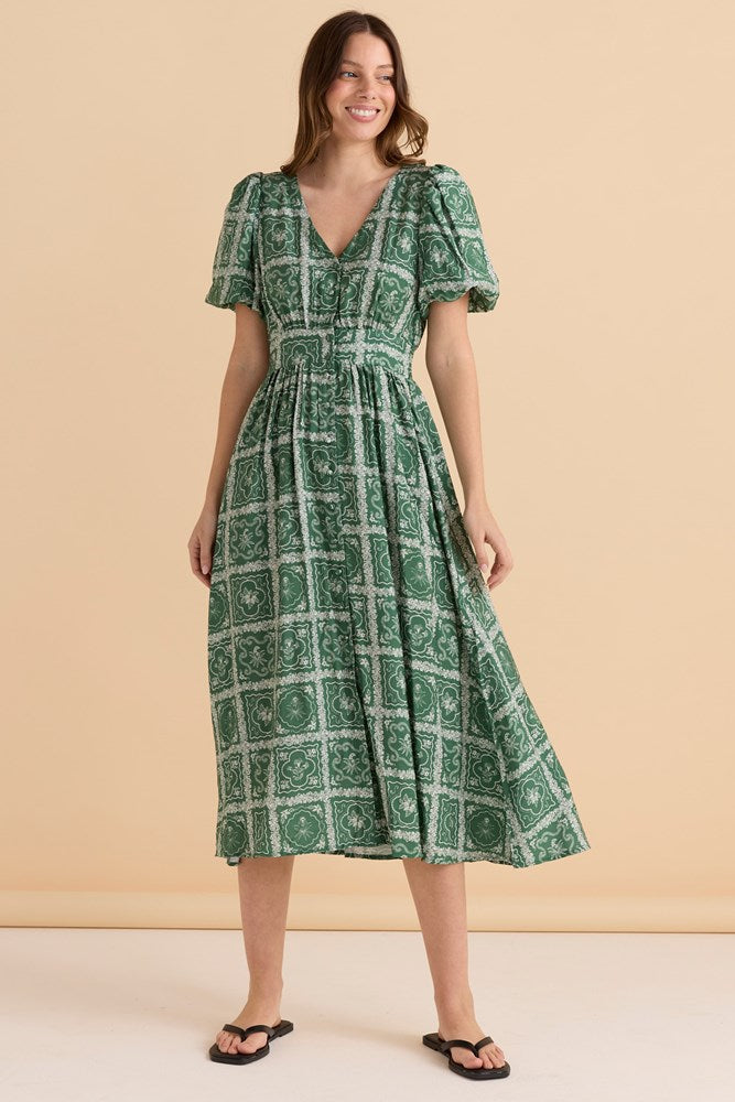 Dahlia Dress - Floral Tile Print