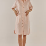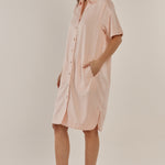 The Dawson Denim Dress offers a sophisticated take on casual dressing with its classic collar and button-up front. Made from comfortable denim feel fabric, it features side patch pockets and a relaxed fit for easy wear. The curved front and back hem add an elevated detail to this transeasonal essential. Classic, comfortable, and effortlessly chic.