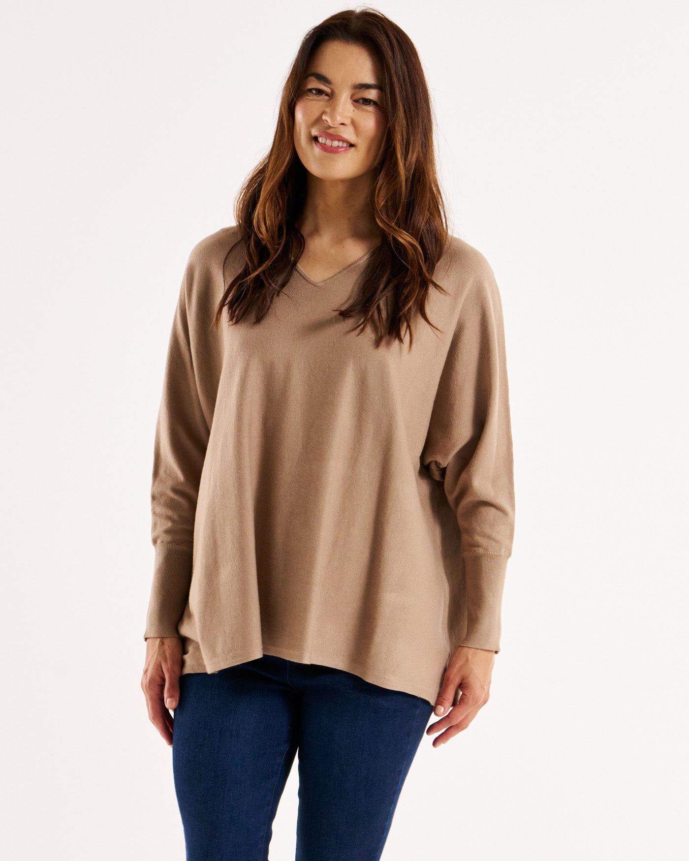Destiny Relaxed V-Neck Lightweight Knit Jumper - Cream Latte