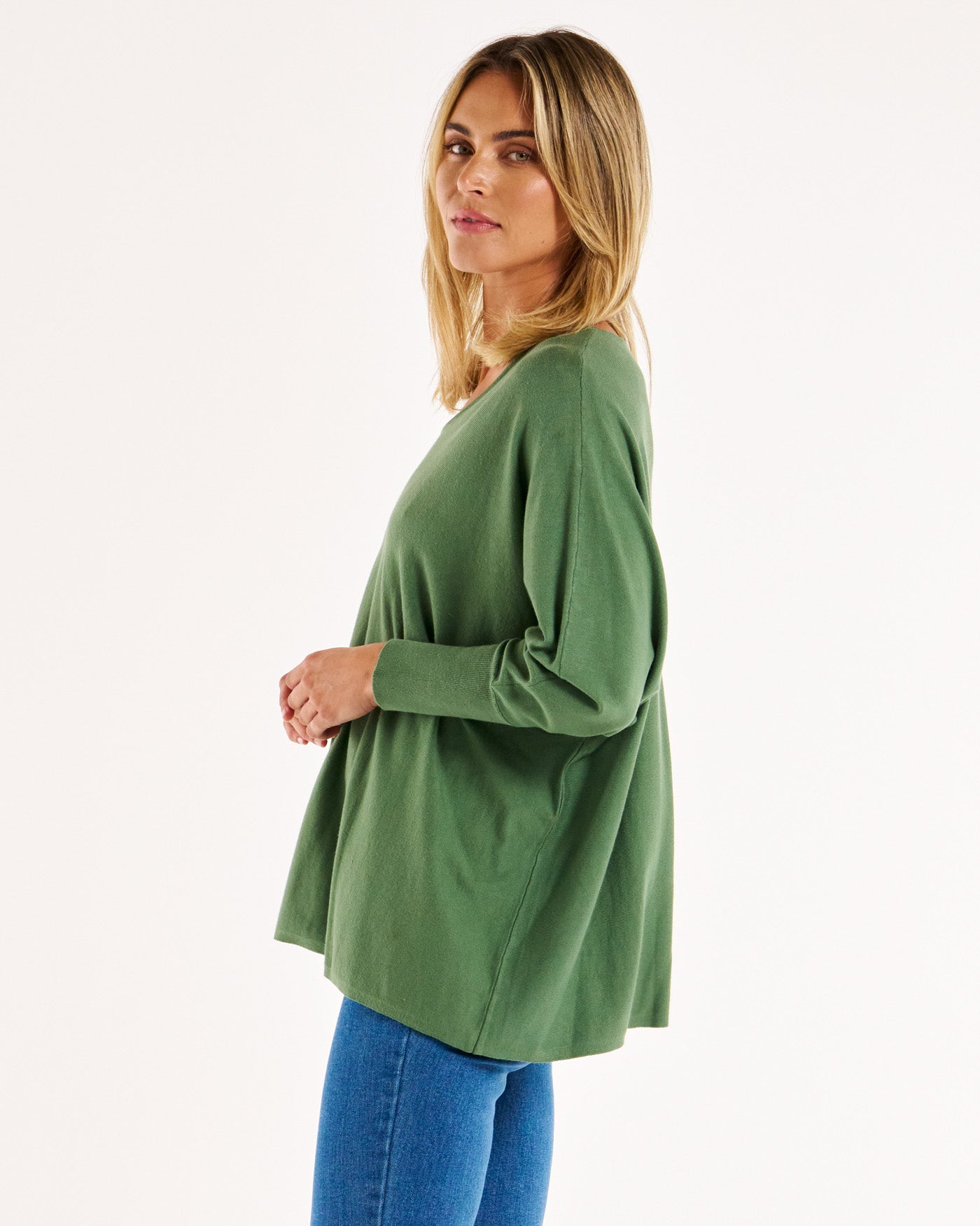 Destiny Relaxed V-Neck Lightweight Knit Jumper - Powder Green