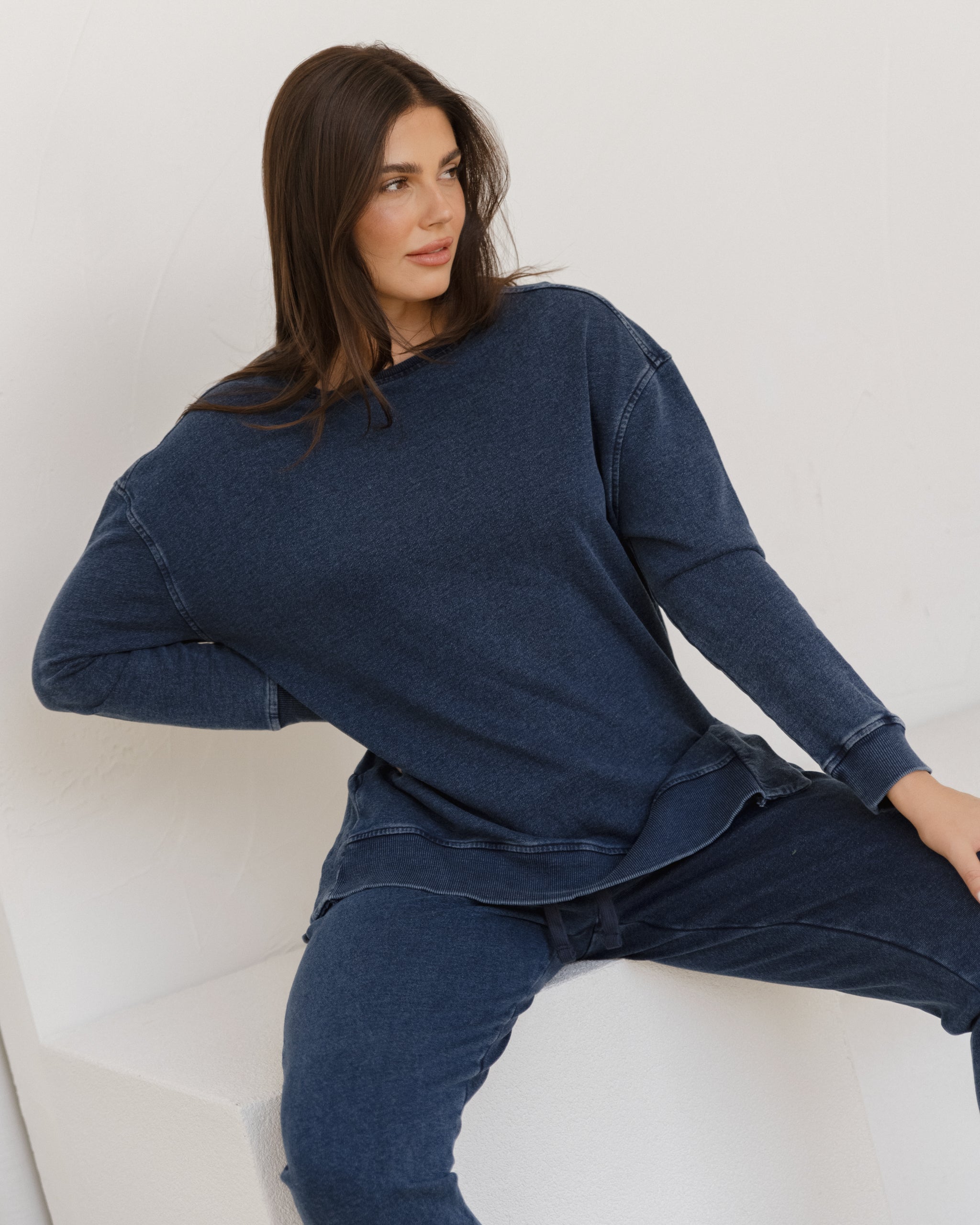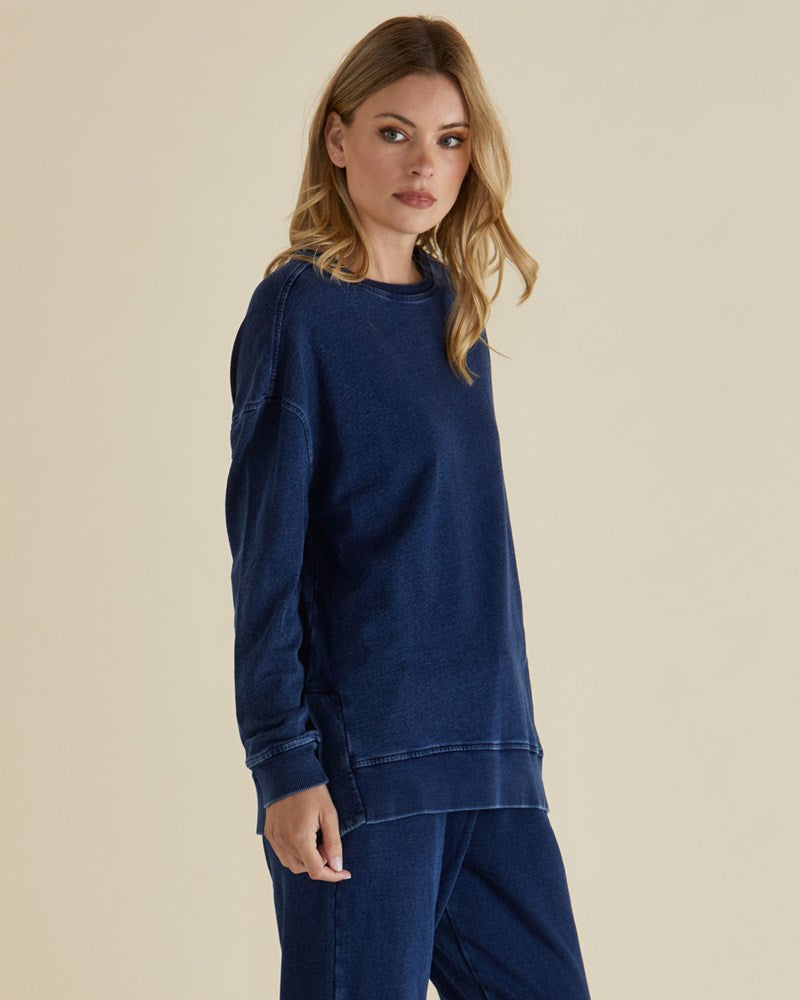 The Easy Crew Sweat is designed for comfort and easy style. Made from soft cotton terry, it features a drop shoulder and side split panels for a relaxed, casual look. The ribbed cuffs and hem add texture, while the relaxed fit ensures you feel at ease all day. Perfect for pairing with jeans or leggings, this top keeps you cozy and chic.