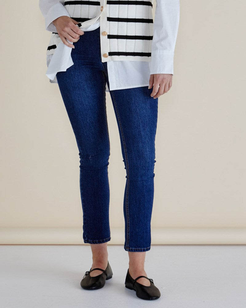 The Electra Skinny Jean offers a polished silhouette with a cropped length and stretch knit denim for comfort. With an elasticated back and 5-pocket detail, it’s an elevated choice for refined casual style.