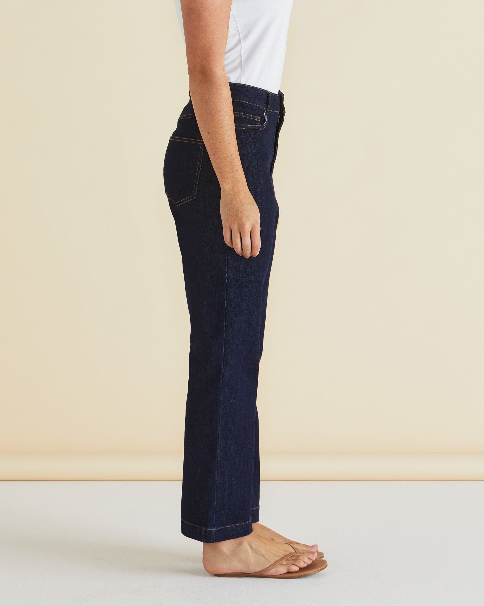 With a flattering bootleg fit, the Fleur Bootleg Jean adds a retro-inspired touch to your wardrobe. Featuring front patch pockets, a button and zip fly front, and belt loops, these jeans deliver a relaxed yet polished look for both day and night wear.