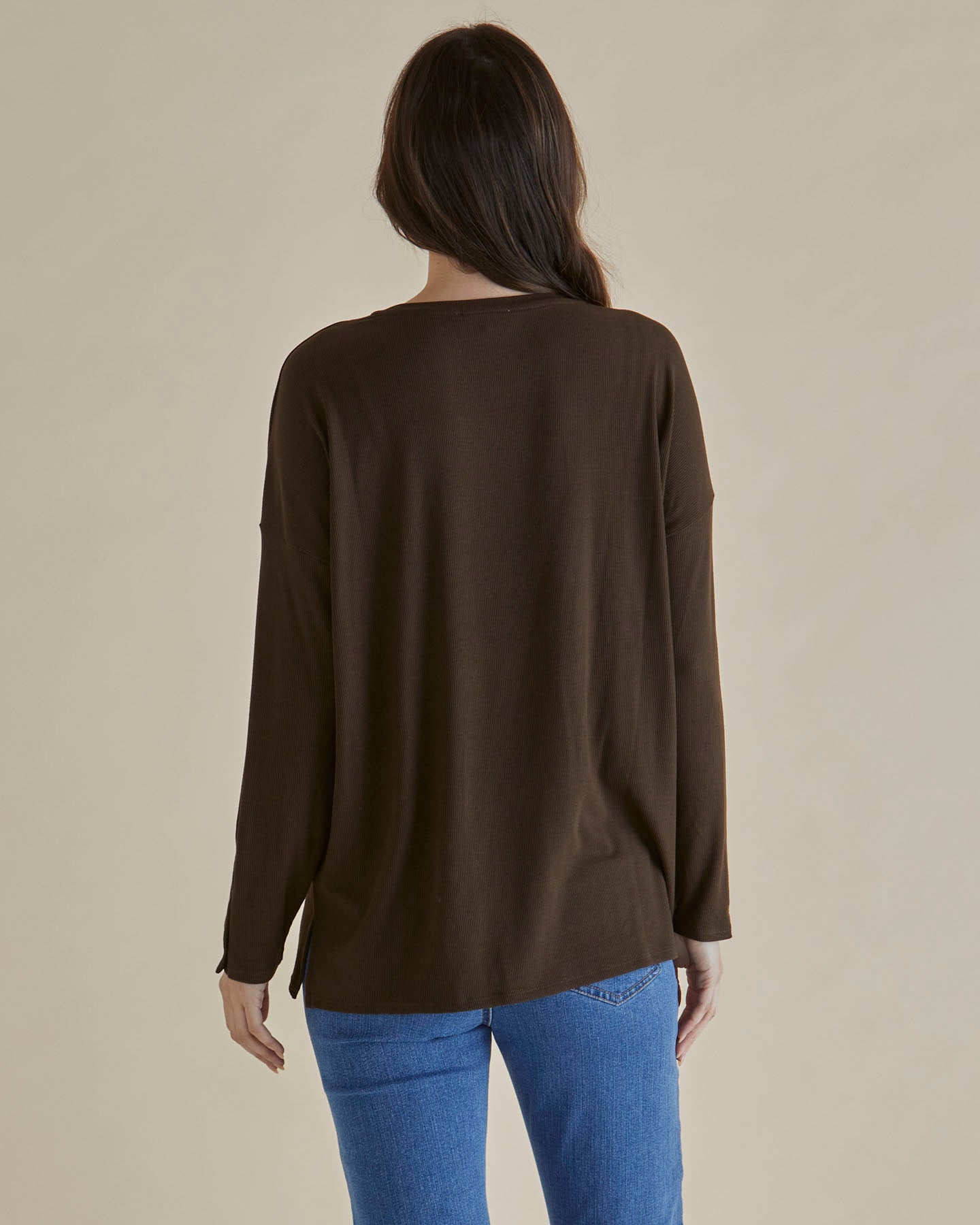 Hendrix Ribbed Long Sleeve Tee - Brown