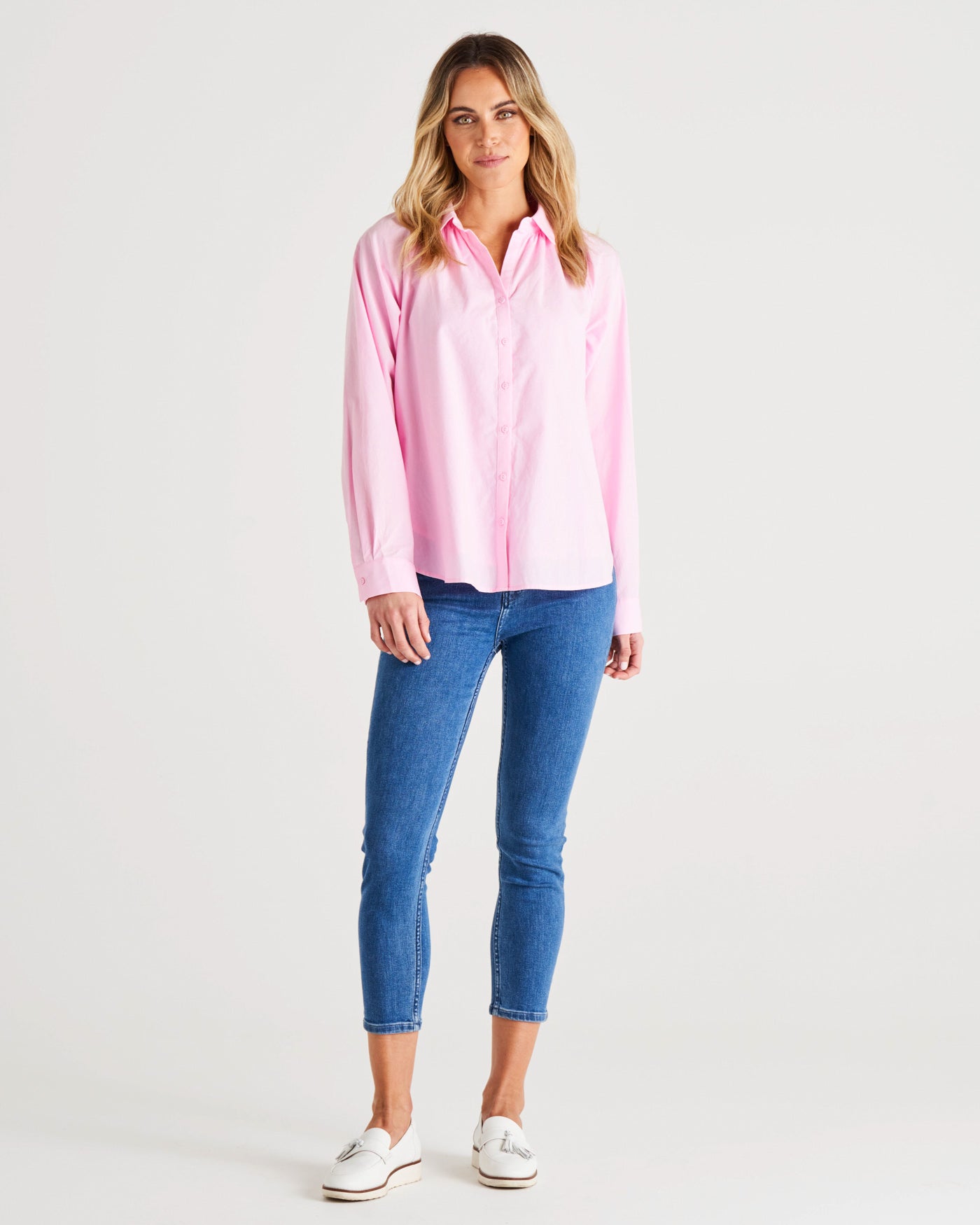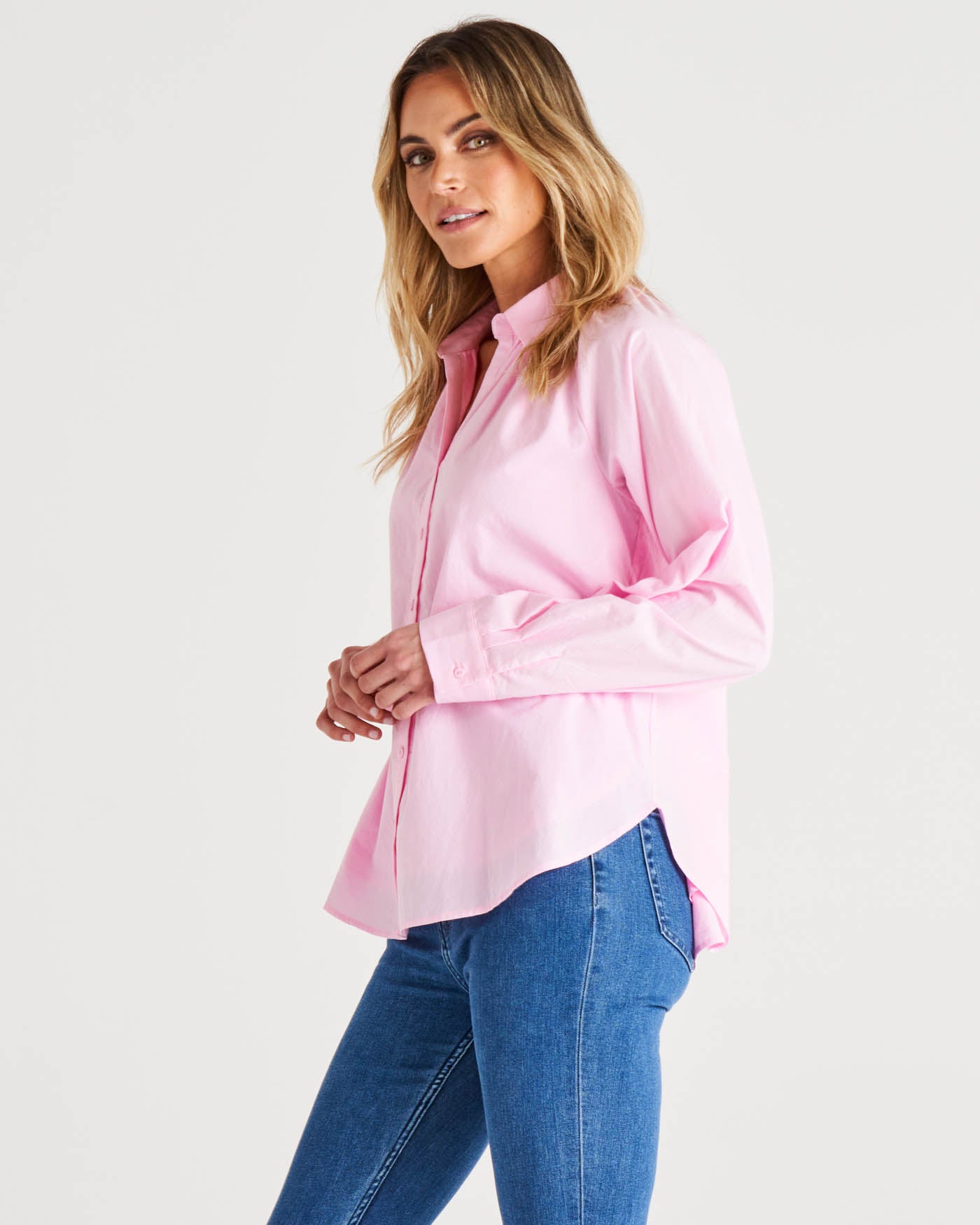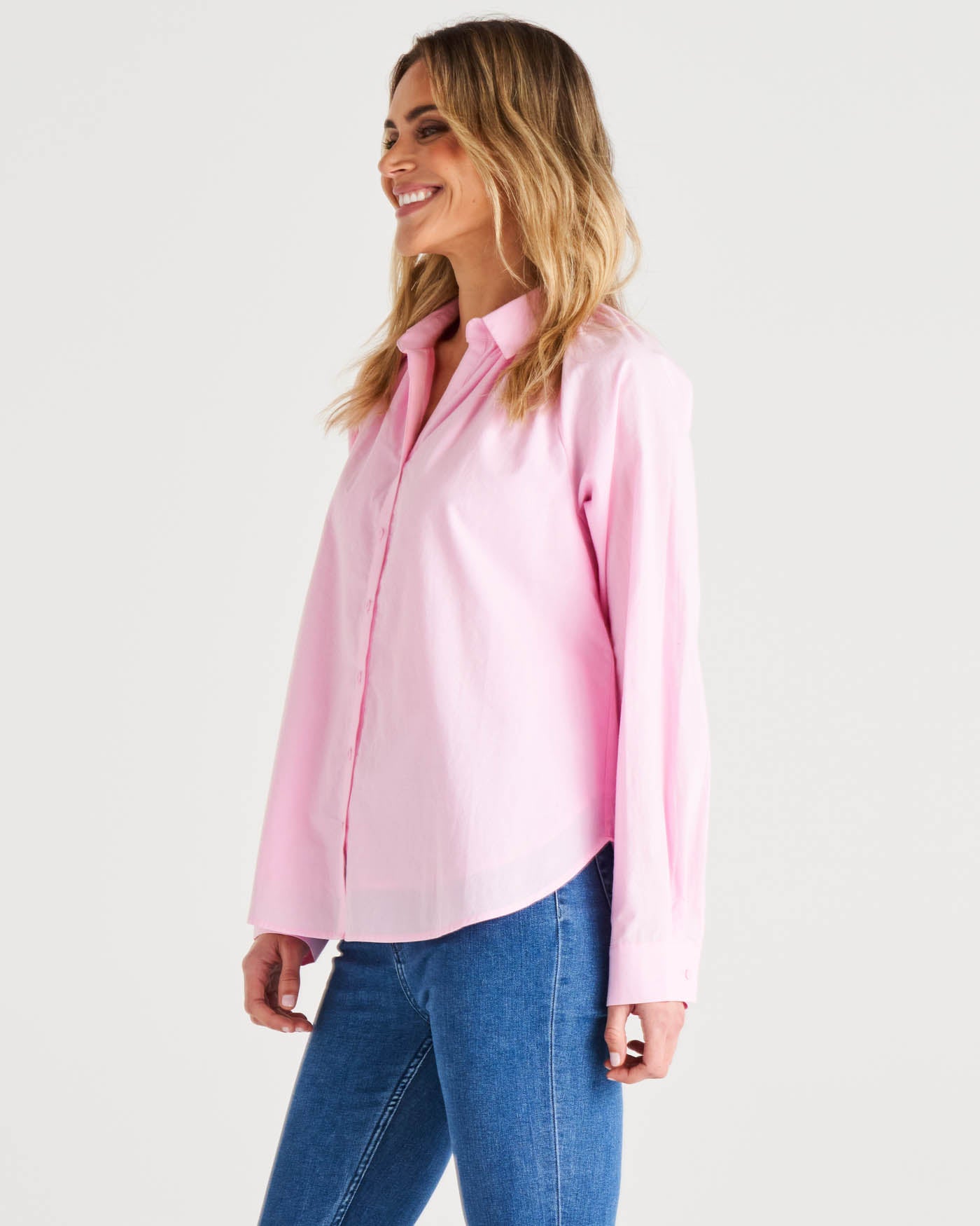 Jackie Relaxed Fit Cotton Button Up Shirt - Blush Pink