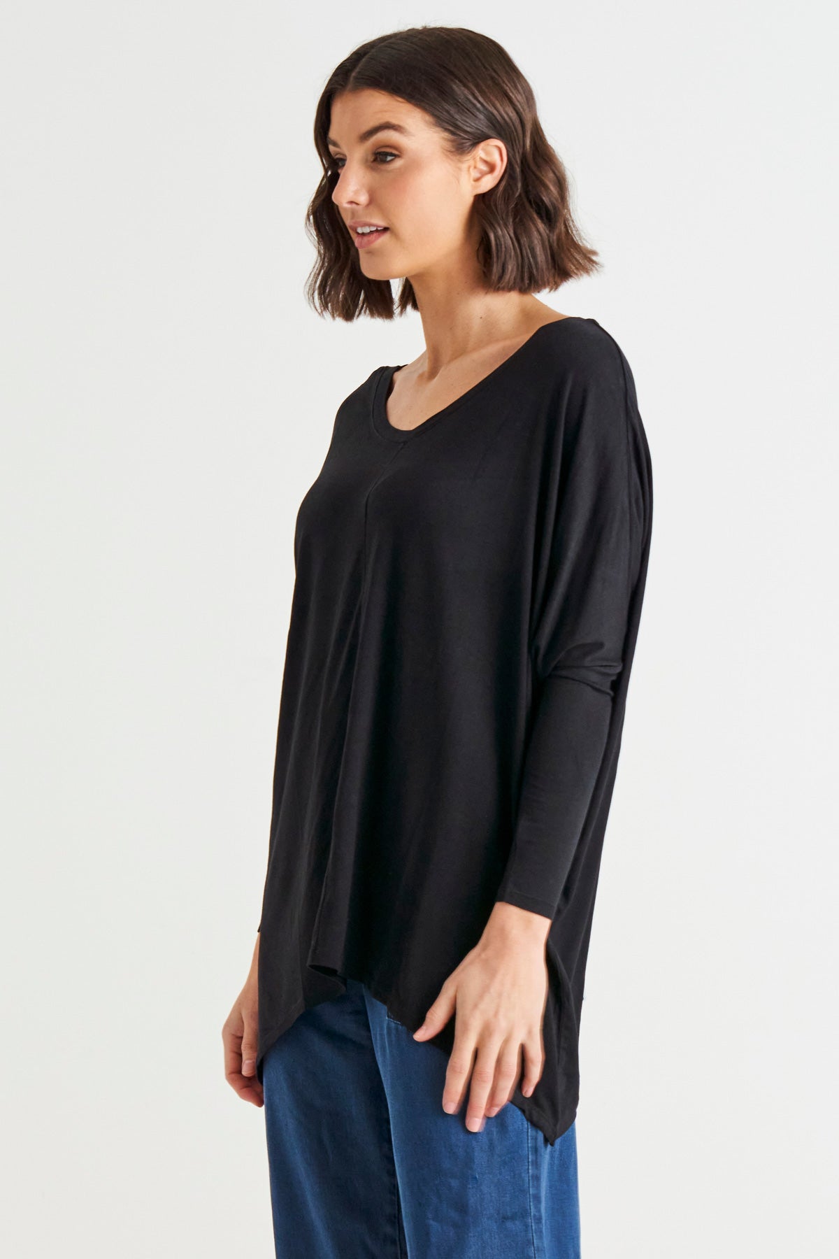 Introducing the Kyoto V-Neck Tee - your new go-to for effortless style and comfort! With its relaxed fit, flattering V-neckline, and trendy drop shoulder long sleeves, this tee is perfect for laid-back days or casual outings. The hanky hem adds a playful twist to your look, making it a fun and versatile addition to your wardrobe. Elevate your style with this must-have tee that's as comfy as it is chic!