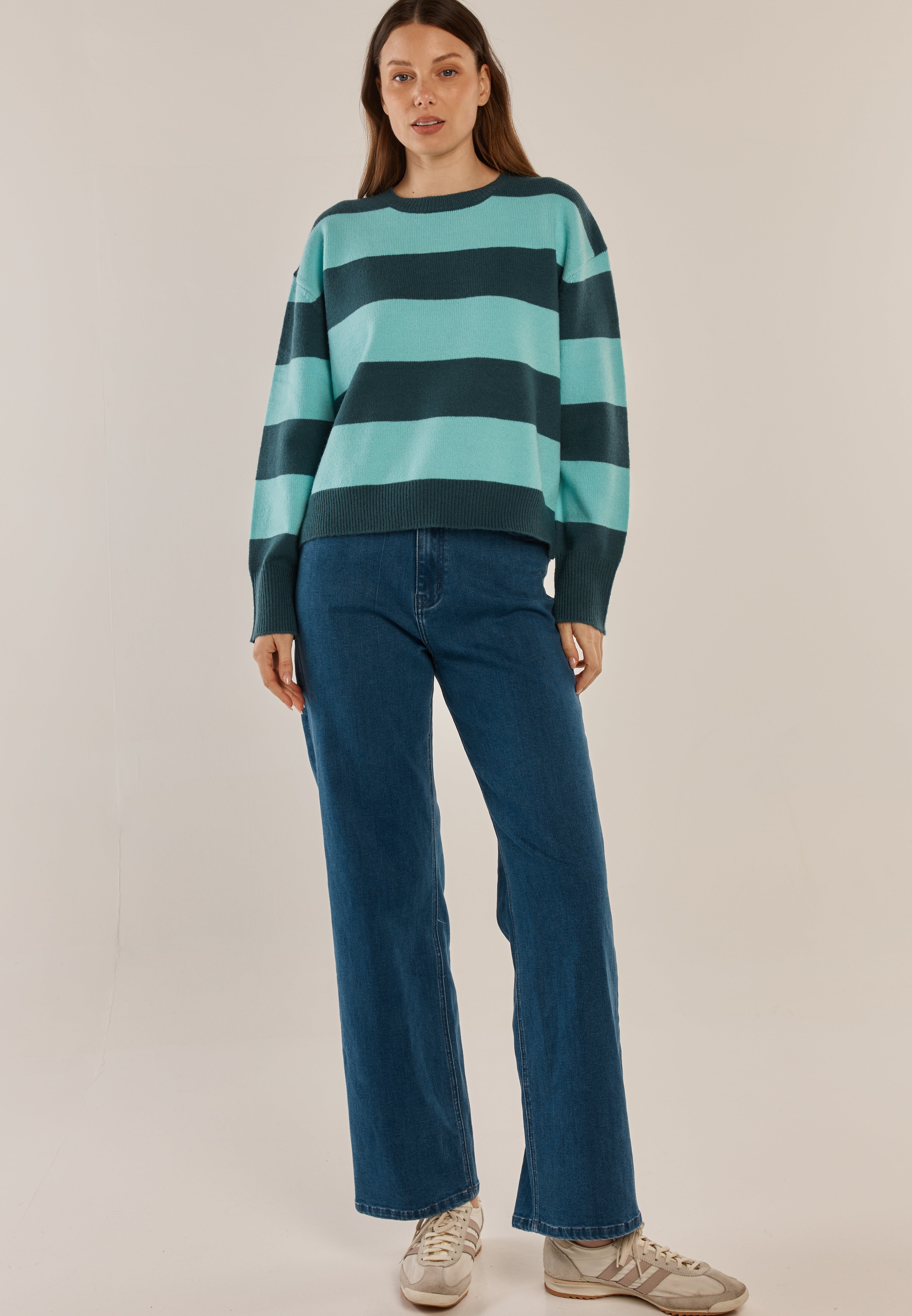 Leonie Knit Sweater - Teal Green/Blue Stripe