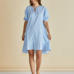 The Livvy Dress captures modern femininity with a touch of effortless charm. Designed with puff sleeves, elasticated cuffs and a tiered hem, it flows beautifully on the body. The front neck tie adds a refined detail to its relaxed silhouette. A transeasonal essential for easy, elevated dressing.