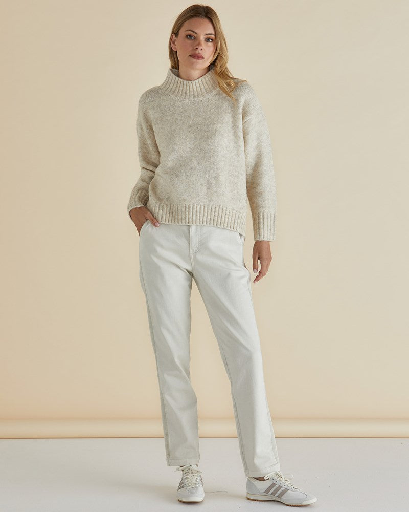 The Lola Jumper is a relaxed, comfortable knit sweater that’s perfect for effortless style. The mock neck and ribbed cuff and hem details add a cozy touch, while the set-in sleeves provide a flattering fit. With its soft stretch knit texture, this jumper ensures you feel at ease while looking chic. Whether paired with jeans or leggings, the Lola Jumper is a versatile piece that will keep you stylish and cozy all season long.
