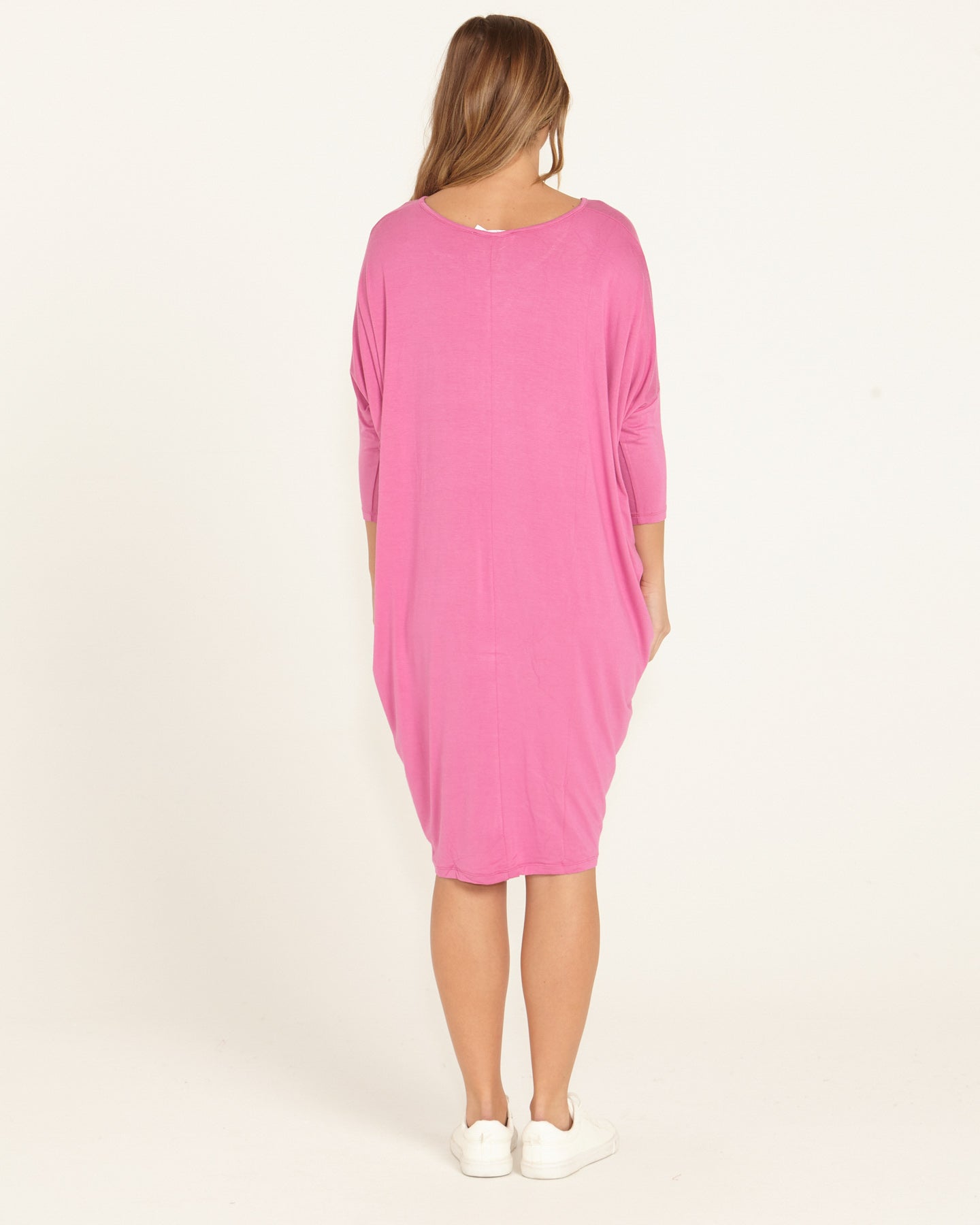 Lucia Stretchy 3/4 Sleeve T-Shirt Dress - Winter Pink