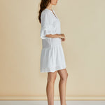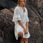 The Malibu Dress captures the essence of easy, feminine dressing. Crafted from breathable cotton, it features ruffle sleeves, a tiered skirt and delicate trim details. The relaxed fit adds a sense of effortless movement, making it perfect for warmer days. A timeless, transeasonal piece that feels both elevated and comfortable.