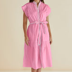The Mari Dress is crafted from structured cotton poplin for a crisp, polished look. Featuring a button-up front with V-neckline and detachable waist tie, it offers classic, elevated style with relaxed ease. Short sleeves and a versatile silhouette make it an effortless transeasonal choice.