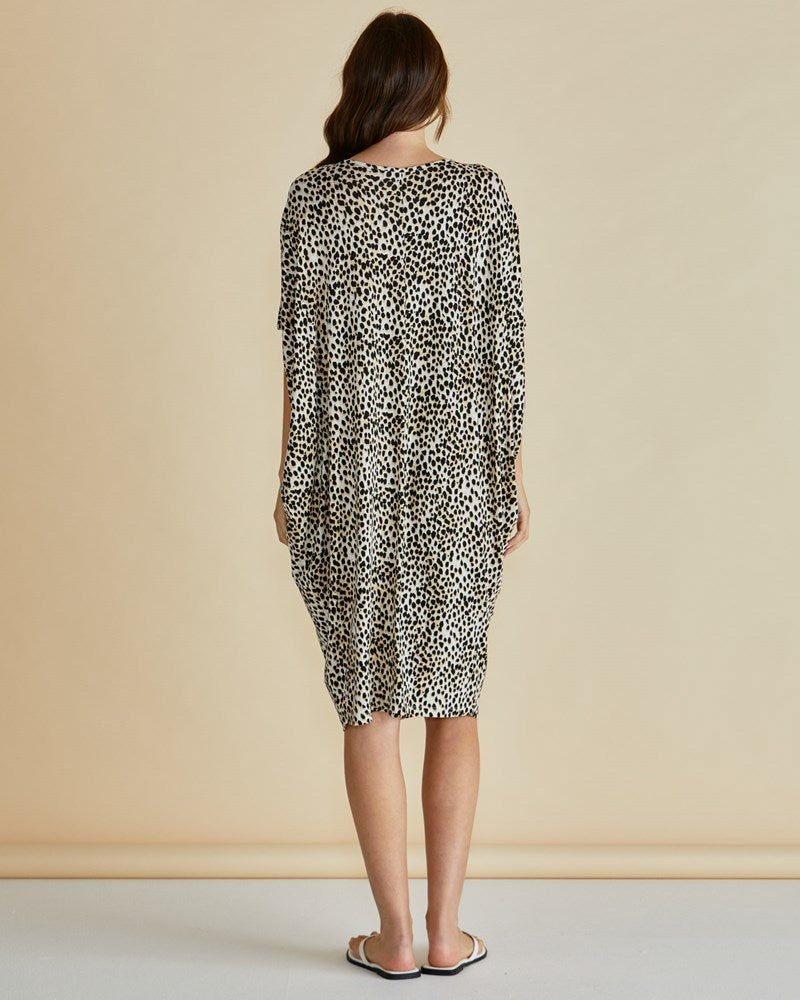 The Maui Dress reimagines relaxed sophistication. Crafted from soft stretch viscose jersey, it features batwing sleeves, a wide scooped neckline and an easy drape through the body. The relaxed fit makes it perfect for effortless day-to-night wear. A timeless, transeasonal favourite with elevated simplicity.