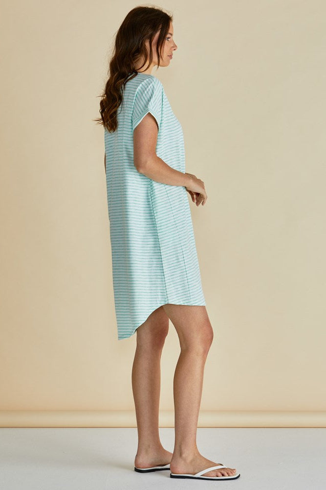 The Maxine T-Shirt Dress is a timeless wardrobe hero that feels as good as it looks. Crafted from soft cotton slub jersey, it features trapeze seam lines, a curved hem and pockets for everyday ease. Its relaxed fit flatters every shape while maintaining a polished feel. A transeasonal essential that embodies effortless sophistication.