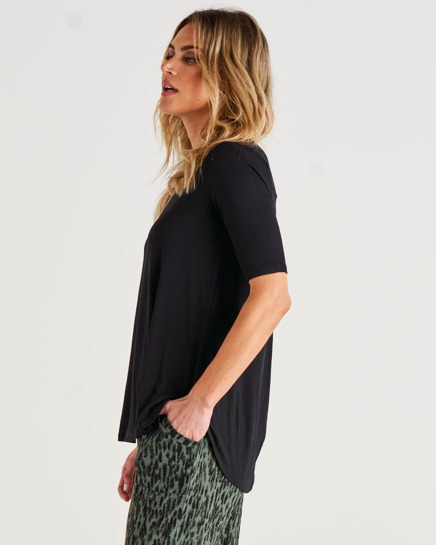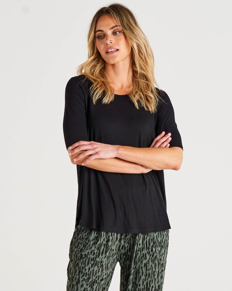 Introducing the Maya Tee your relaxed style essential! With its laid-back fit, scoop neck, and back yoke pleat detail, this tee is the epitome of casual cool. Elevate your wardrobe effortlessly with the Maya Tee perfect for adding a touch of fun and comfort to any day. Unwind in style, because relaxation has never looked this good!