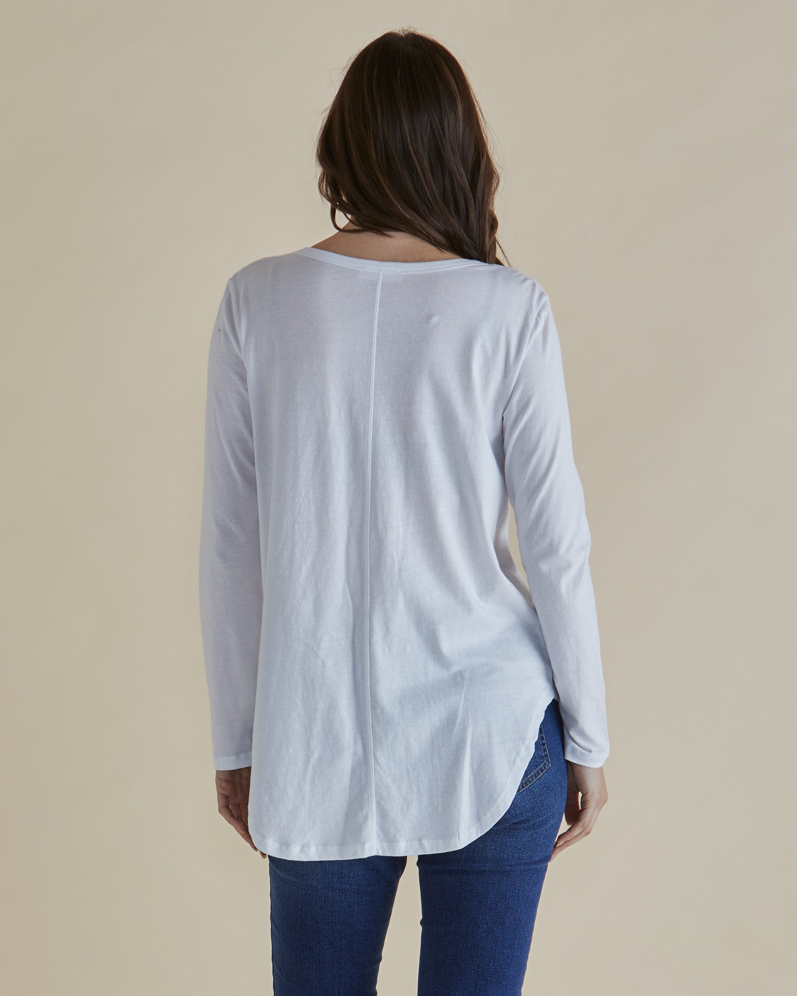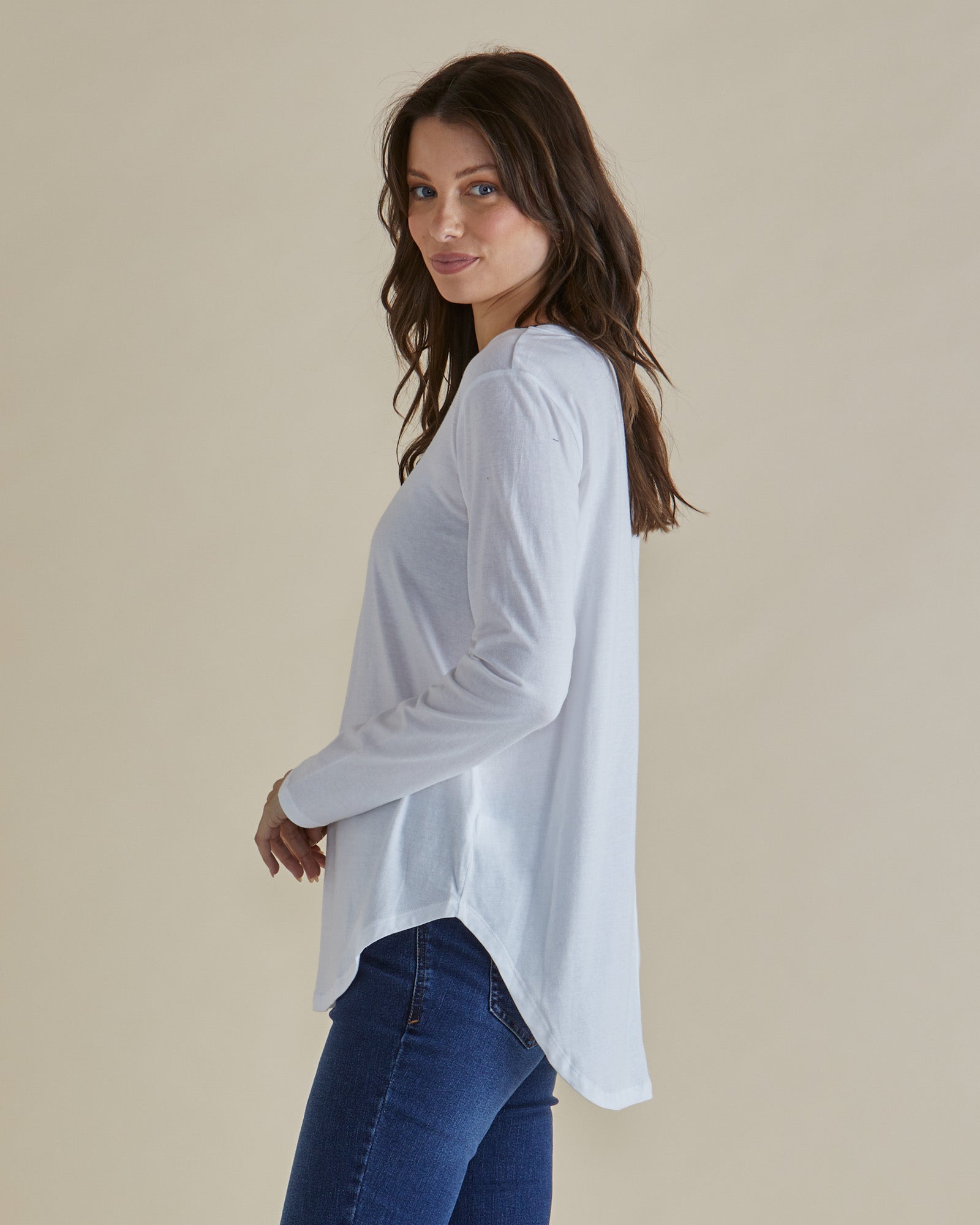 The Megan Long Sleeve Tee from Betty Basics is an all time fan favourite! Loved for its relaxed fit and effortless style, this classic features a flattering scoop neck and long sleeves, perfect for any season. The curved hem at the front and back adds a playful touch, ensuring you stay stylish and comfortable. Ideal for layering or wearing on its own, the Megan Tee is a timeless and versatile wardrobe staple you’ll reach for again and again.