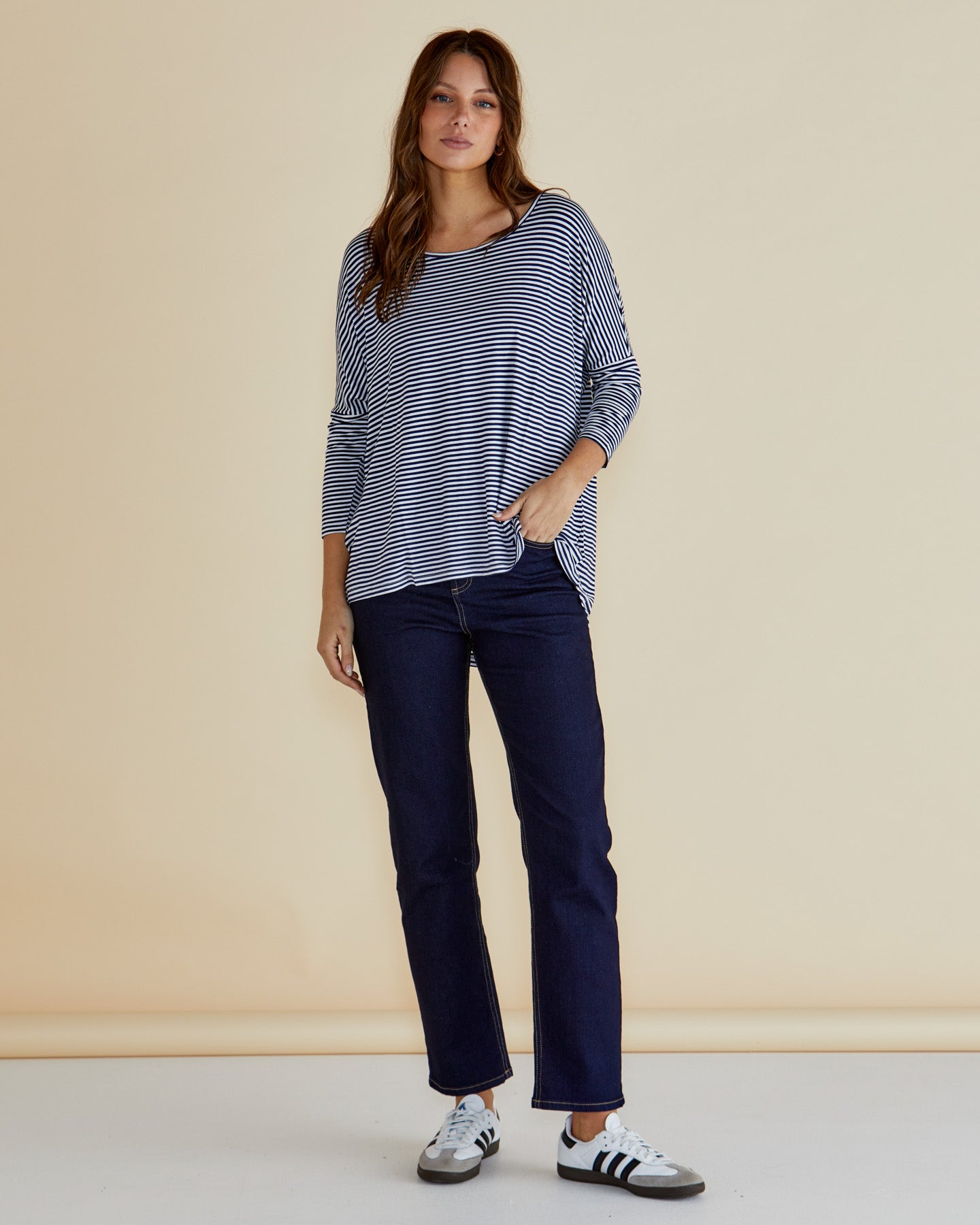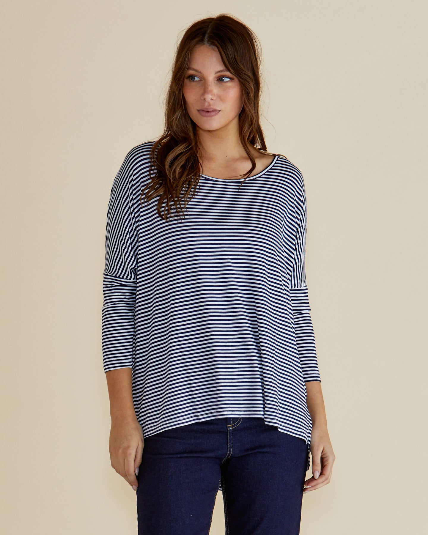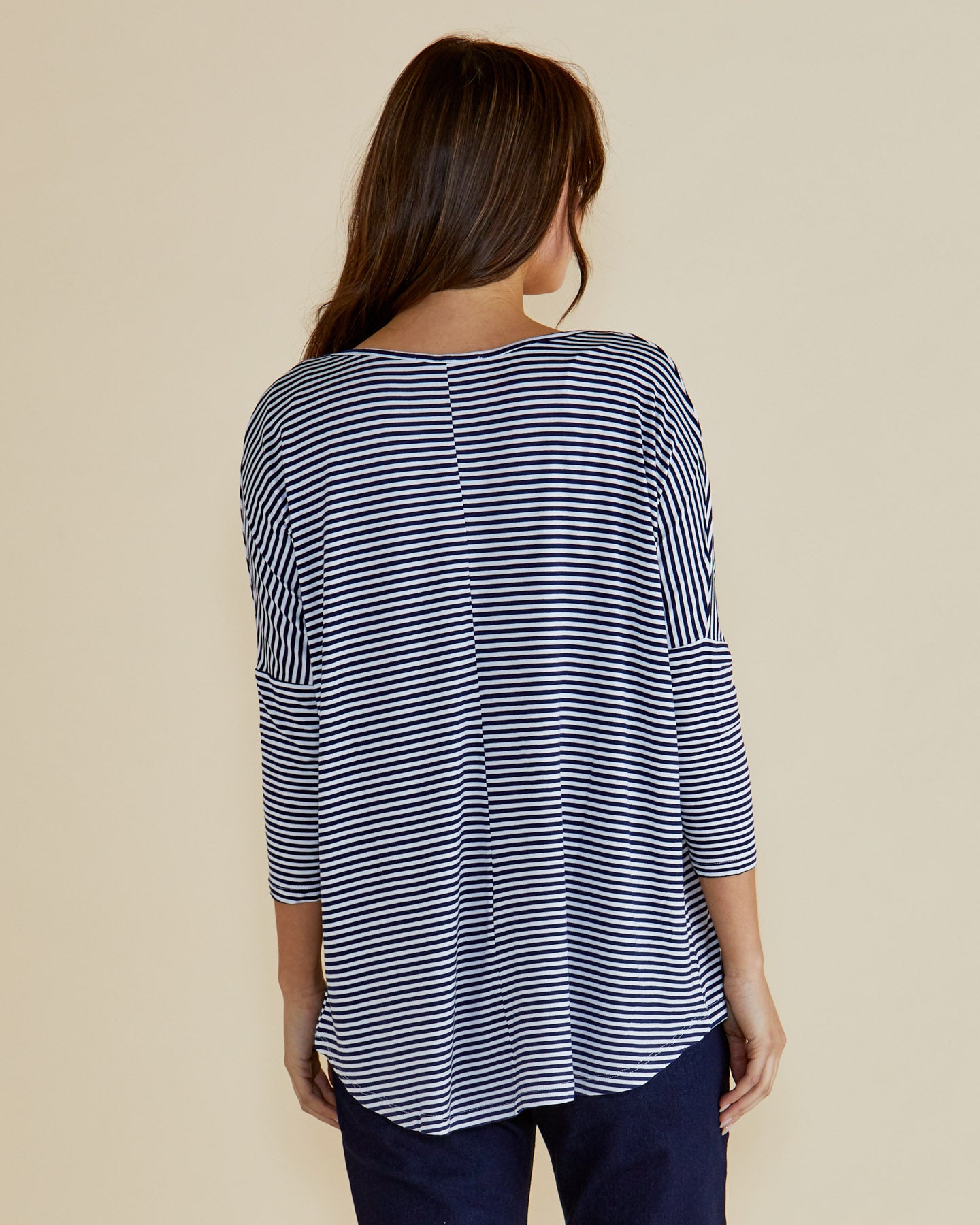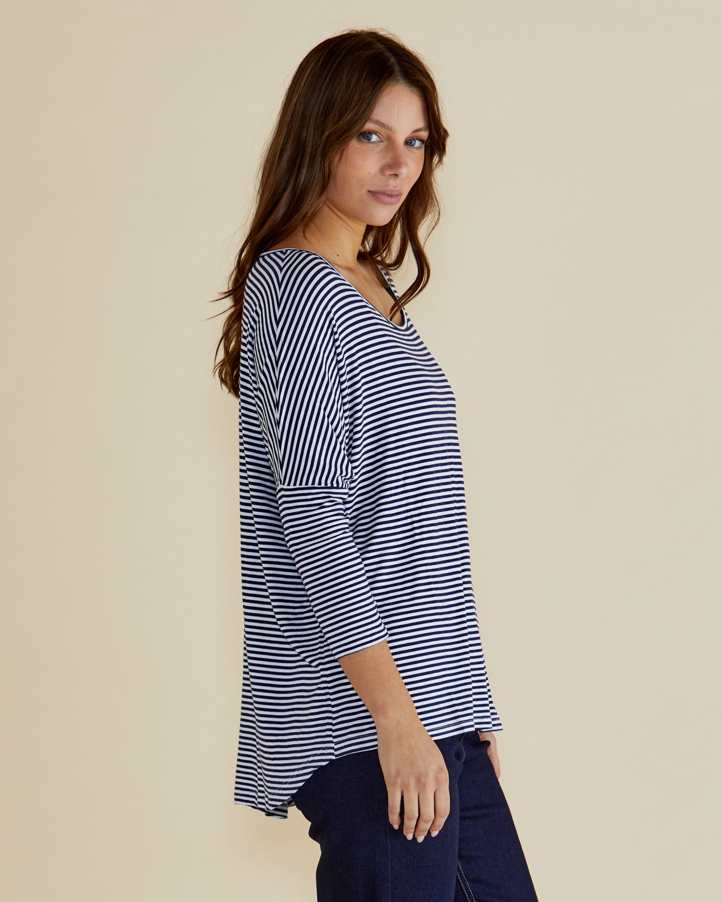 Milan 3/4 Sleeve Top - Navy Blue/White Stripe