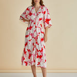 The Moxie Dress brings an elevated touch to everyday dressing. With its button-up front, V-neckline, flutter sleeves and tiered hem, it offers a relaxed yet feminine feel. The shirred waistband adds shape and comfort, while the flowy silhouette moves with ease. A timeless transeasonal piece designed for effortless wear.