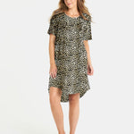 The Nyree Dress offers relaxed comfort in a soft cotton jersey with a scoop neckline and elongated sleeve length. The high-low curved hem adds a subtle elevated touch. A classic silhouette designed for effortless transeasonal wear with a comfortable fit.