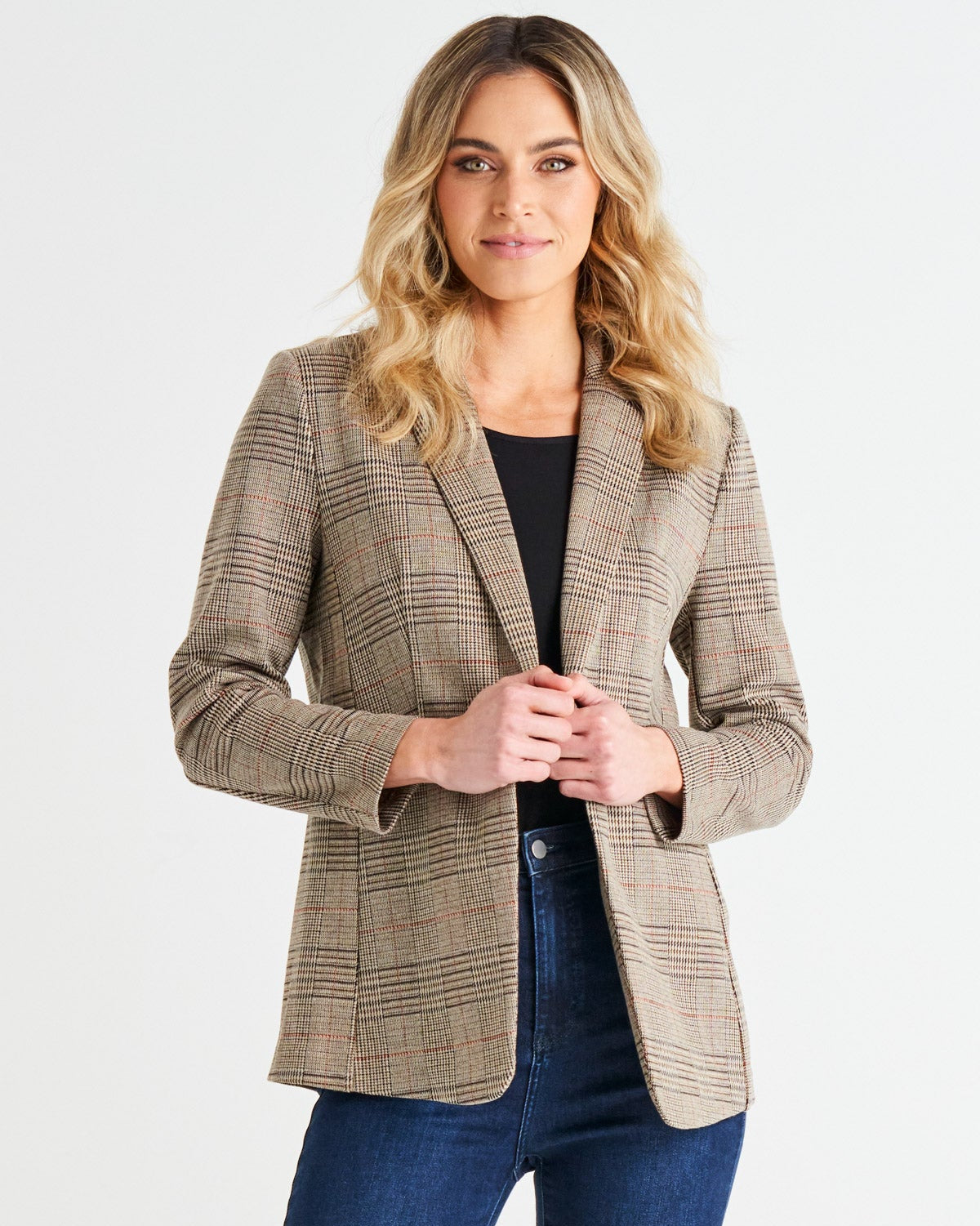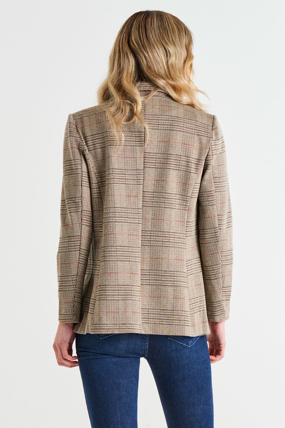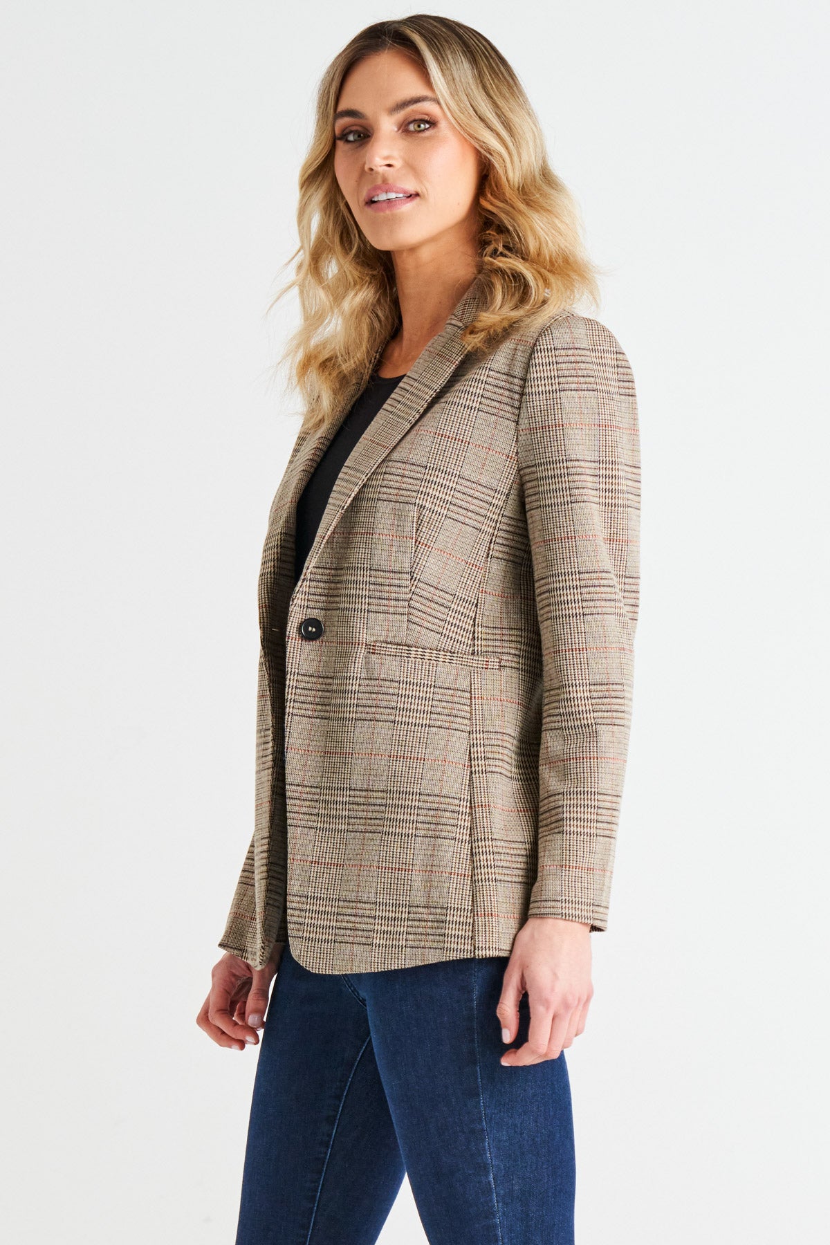 Portsea Single-Breasted Stretchy Lightweight Blazer - Mocha Plaid