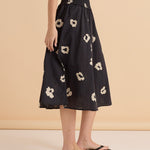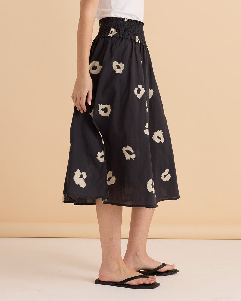 A soft drapey skirt in a crisp cotton blend. The shirred waistband offers comfortable stretch and flattering fit. A midi length for easy elevated dressing. A relaxed essential with timeless appeal.