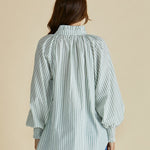 The Romi Shirt blends timeless sophistication with a soft romantic touch. Designed with a stand collar, button-up front and raglan long sleeves, it’s finished with shirred cuffs and delicate frill detailing. The relaxed fit ensures easy wear through every season. Effortless and elevated, it’s a modern classic.