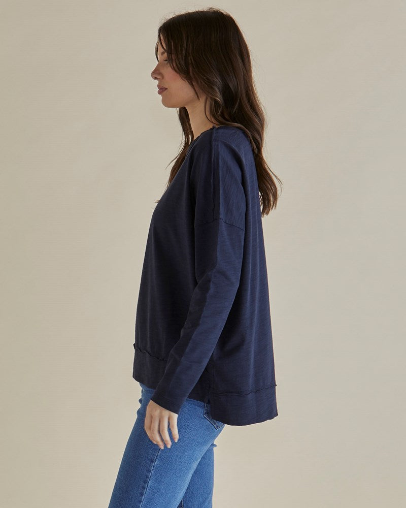 The Roxette Tee is your go-to for effortless, everyday styling. Made from soft cotton slub, it features a relaxed fit with a high-low hem and side splits, adding a playful touch to the elegant design. The raw edge detailing offers a current, on-trend vibe, while keeping you comfortable and cool for those warm summer days.