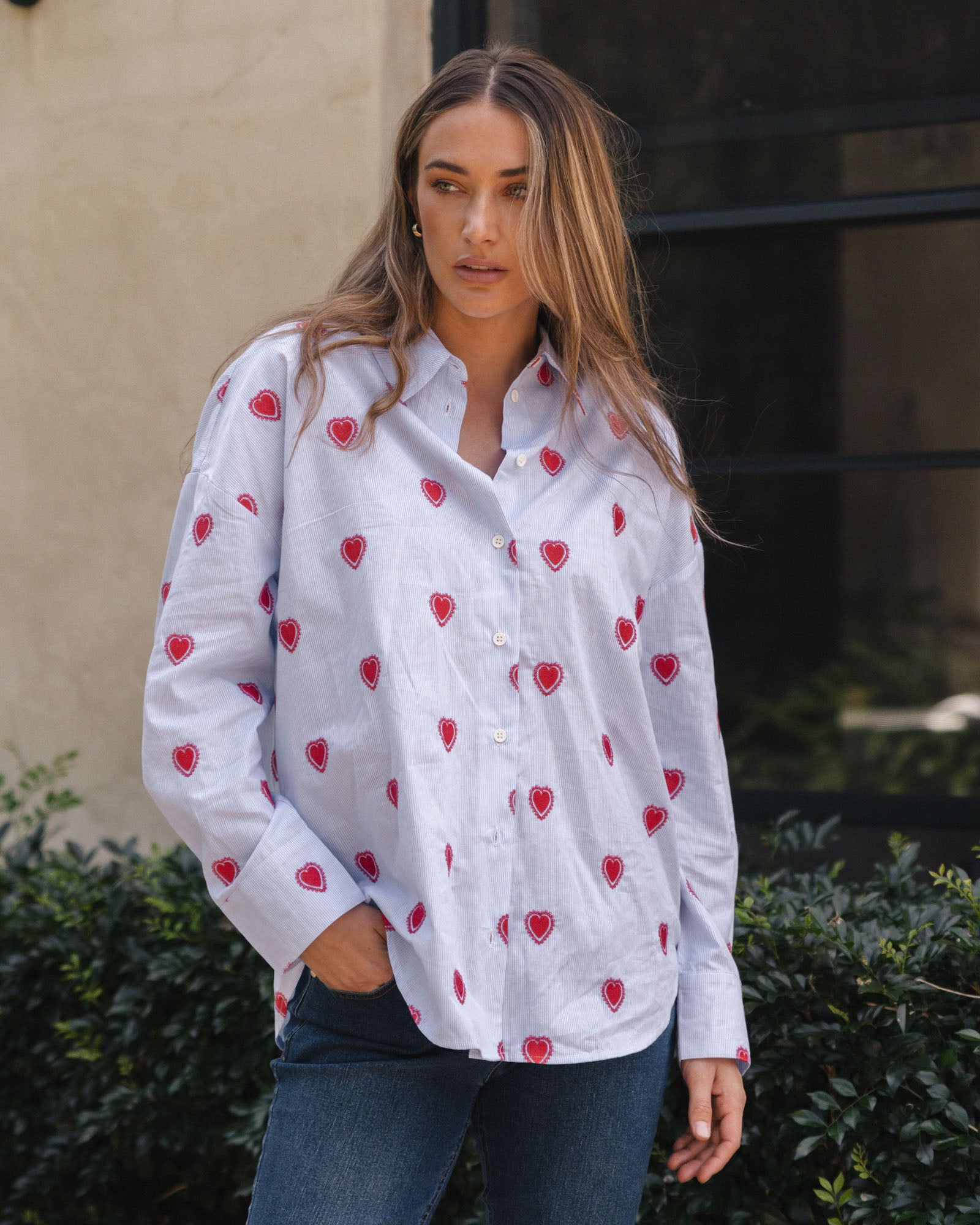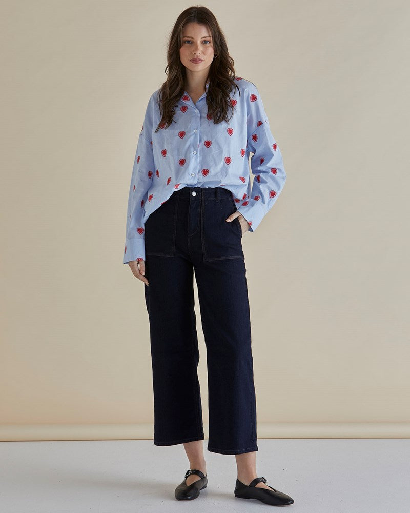 The Sage Shirt is a beautifully tailored piece with classic collar and button-up front detailing. Featuring a drop shoulder and curved hem, this shirt combines elegance and relaxed comfort for a timeless, easy-to-wear look perfect for any occasion.