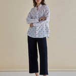 The Sage Shirt is a beautifully tailored piece with classic collar and button-up front detailing. Featuring a drop shoulder and curved hem, this shirt combines elegance and relaxed comfort for a timeless, easy-to-wear look perfect for any occasion.