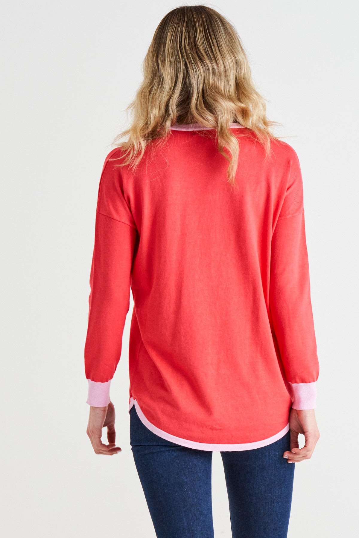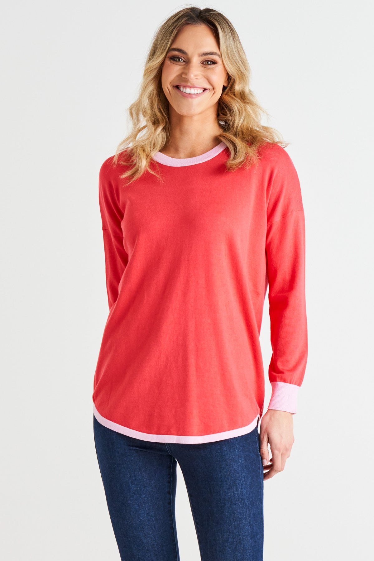 Sophie Lightweight Relaxed Knit Jumper - Pink Tipping