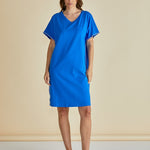 The Stellar T-Shirt Dress combines timeless design with relaxed ease. Featuring a V-neckline, extended short sleeves and trim detailing, it’s crafted from a soft cotton blend with stretch for ultimate comfort. The relaxed fit makes it ideal for effortless transeasonal wear. A classic silhouette with a modern touch.
