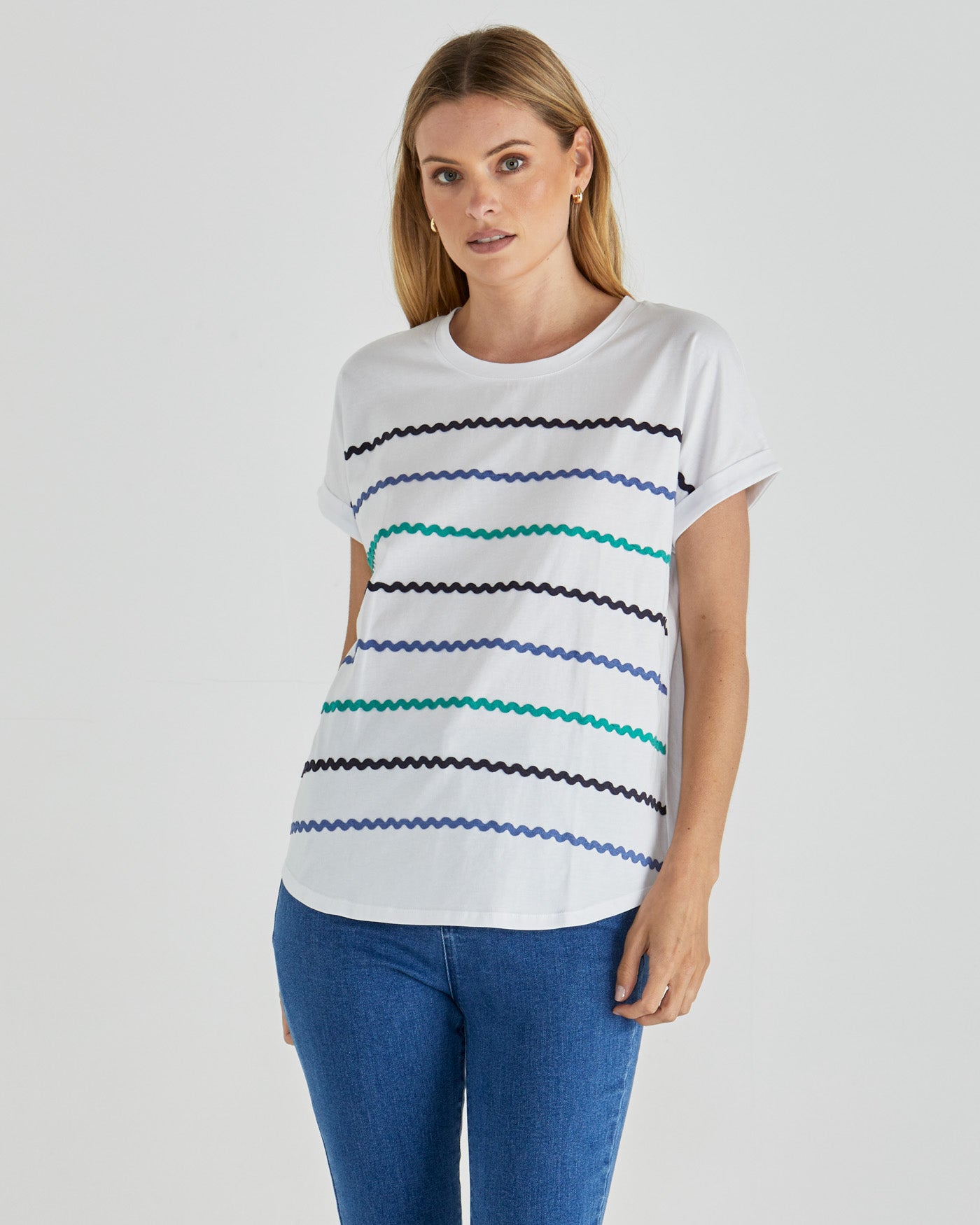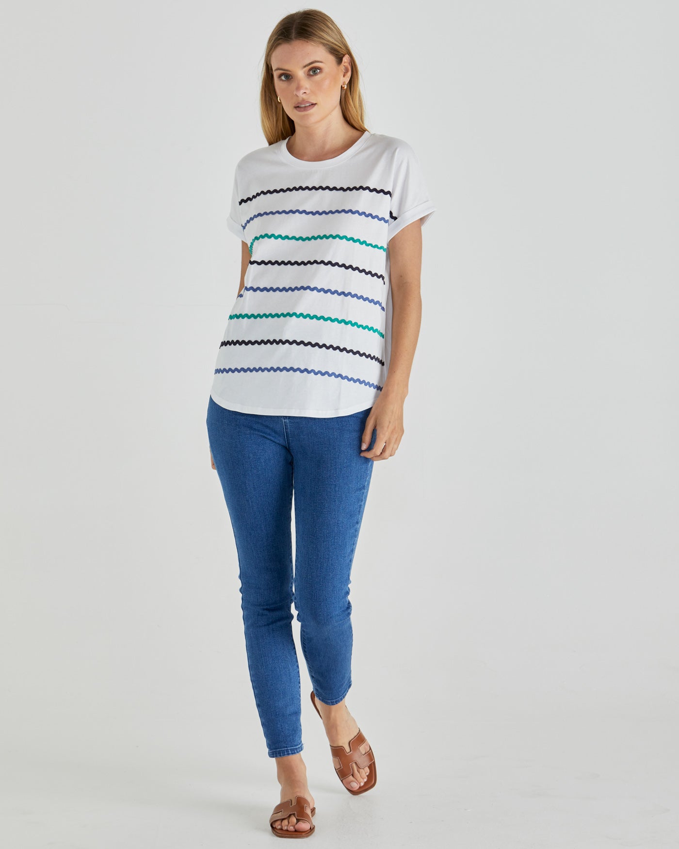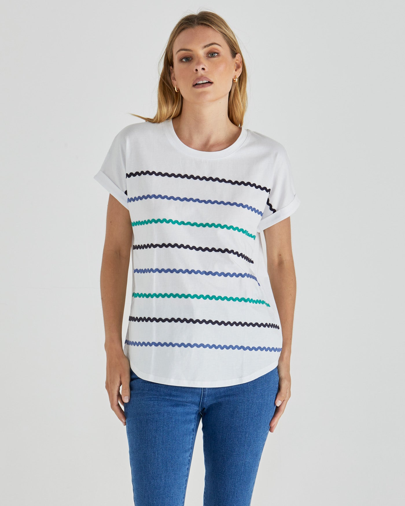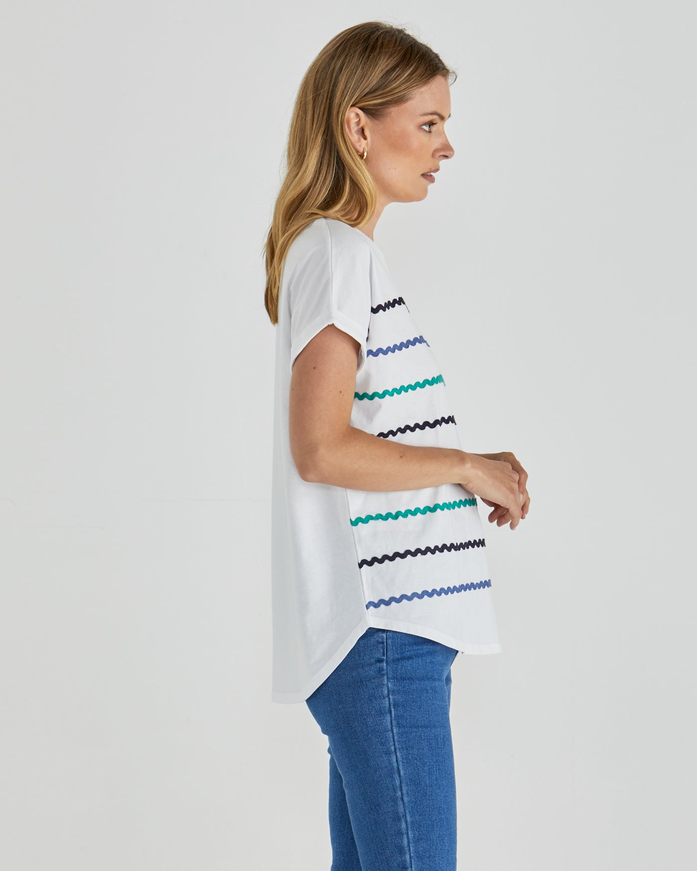 Enjoy timeless style with the Sunny Tee, crafted in soft cotton jersey with a classic crew neck. The cuffed short sleeves and curved hemline add a touch of refinement to this essential, making it an effortlessly polished piece for daily wear.