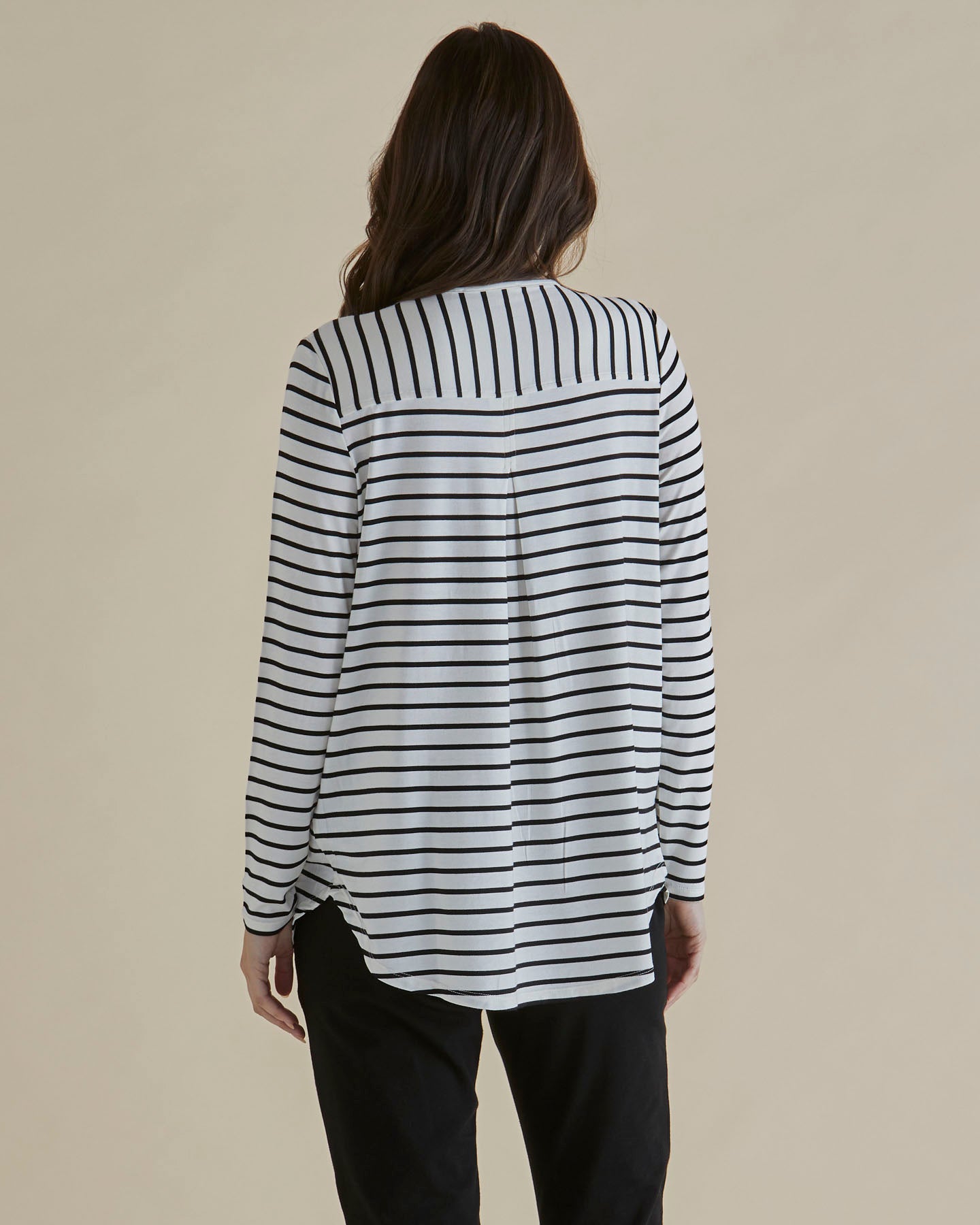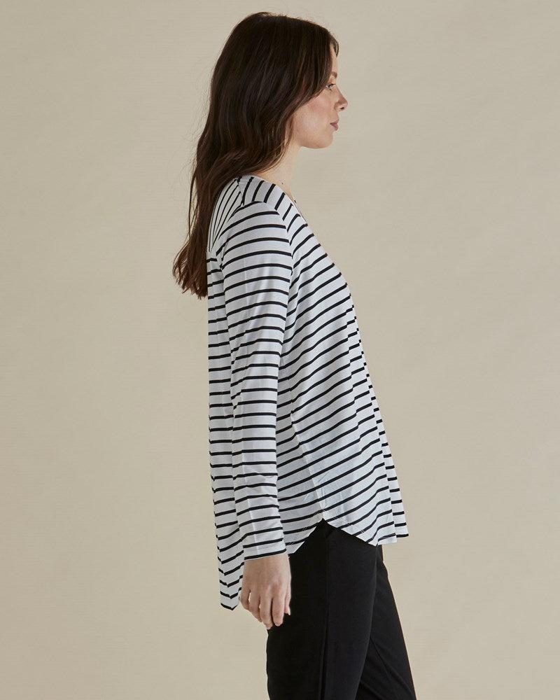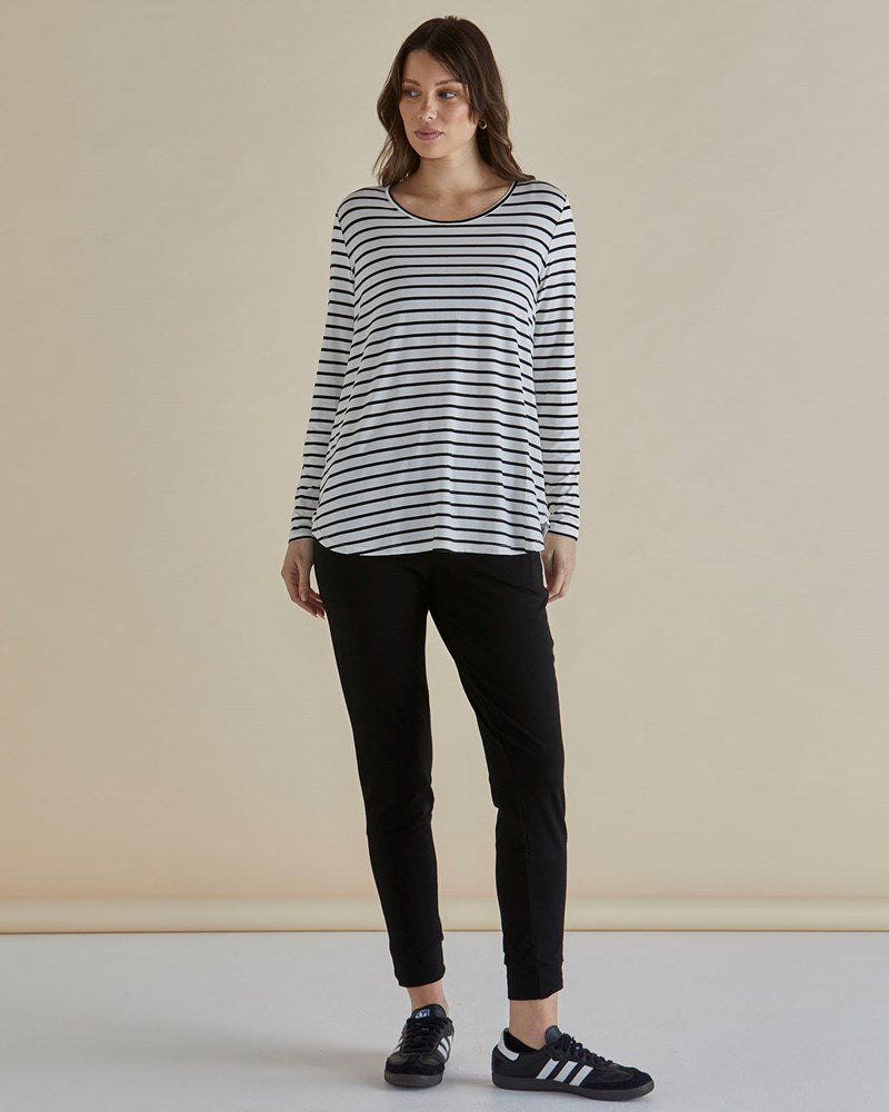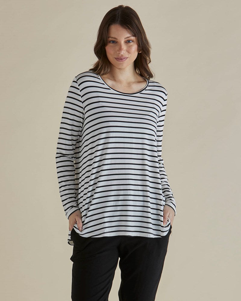 Yasmin Long Sleeve Top - Black/White Stripe